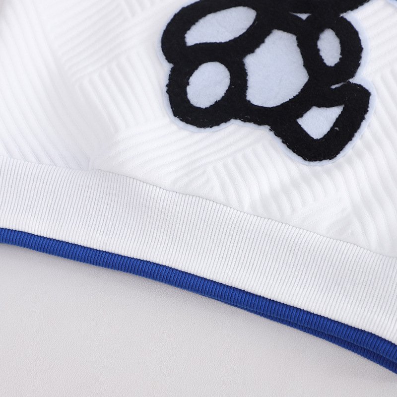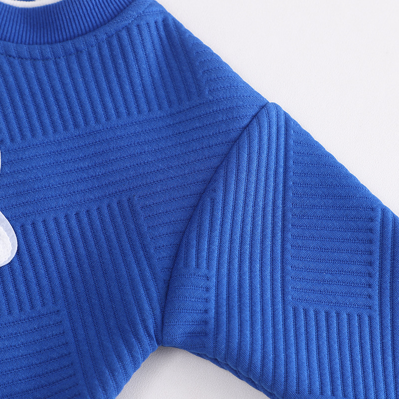 봄과 가을 새로운 색상 매칭 만화 단색 라운드 넥 자켓 코튼 바지 어린이 1-4 세 투피스 공장 도매스토어 가기