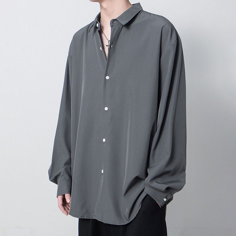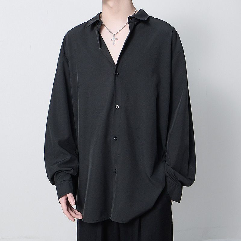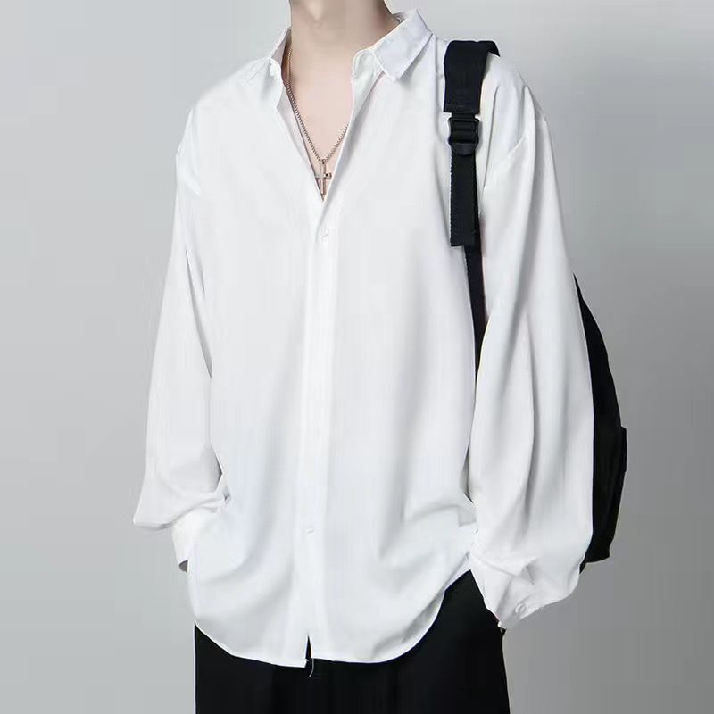 흰색 긴 소매 셔츠 남자의 새로운 한국 스타일 드롭 탑 느슨한 고급 아이스 실크 단색 쿨 dk 셔츠스토어 가기