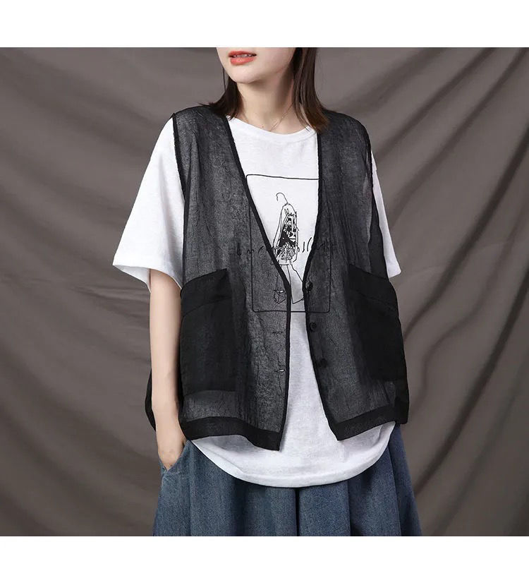 통통녀 플러스 사이즈 예술적 캐주얼 카디건 조끼 여자의 가을 얇은 카디건 외부 탑 모든 일치 민소매 조끼