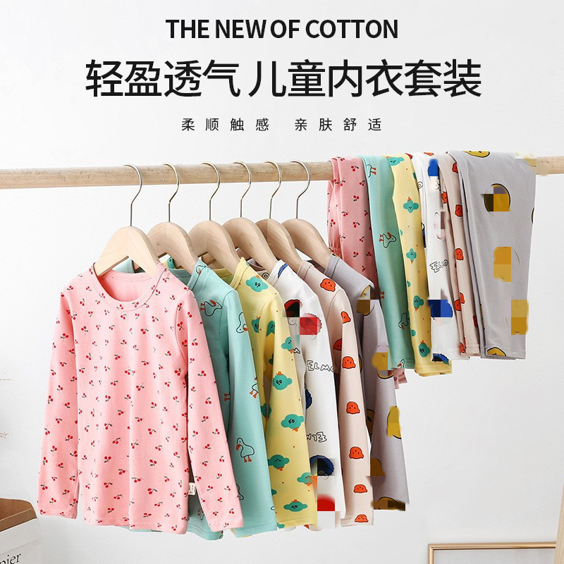 소년 소녀 봄과 가을 얇은베이스 속옷 세트 전체 인쇄 코튼 스웨터 가을 바지 도매에 대 한 어린이 라이크라 잠옷스토어 가기