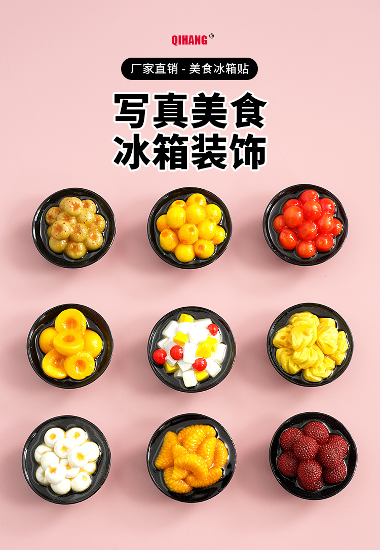 특별한 음식 냉장고 스티커 창조적 인 음식 놀이 옐로우 복숭아 레드 베이베리 파인애플 리치 호손 오렌지 비파 토마토 과일 그릇스토어 가기