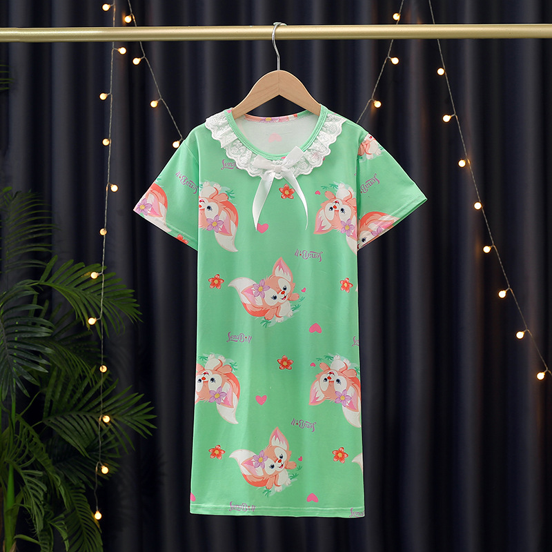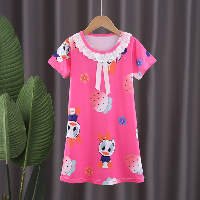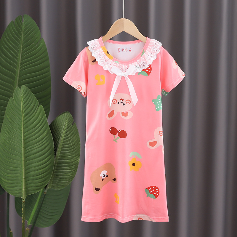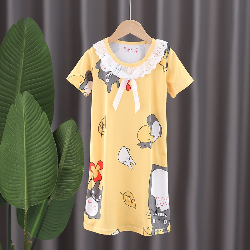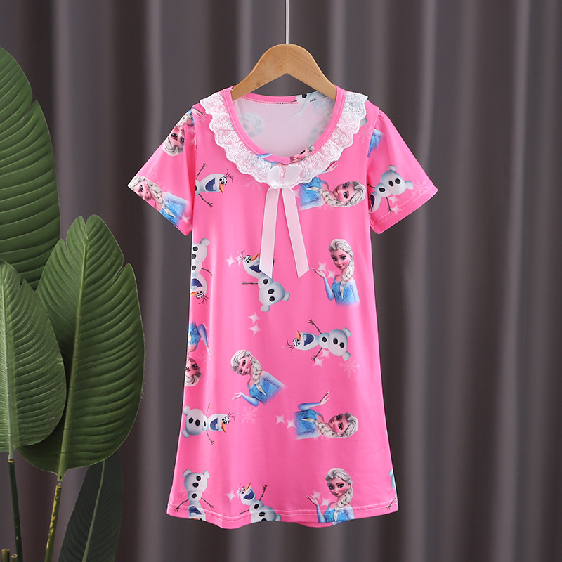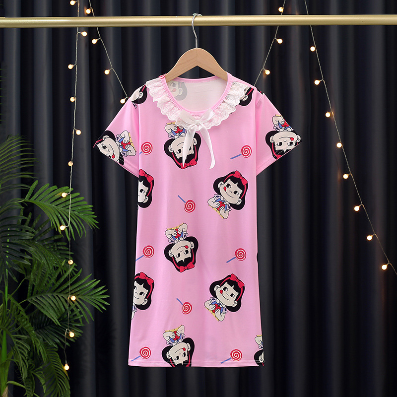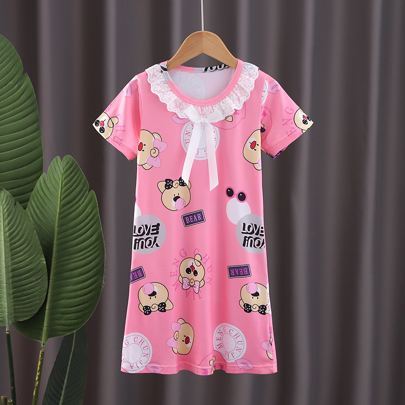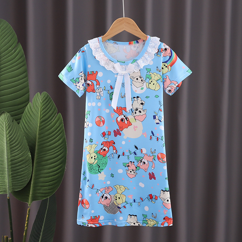 어린이 잠옷 여아 잠옷 여름 반팔 아기의 얇은 레이스 스커트 어린 소녀의 만화 중간 및 큰 어린이 가정복스토어 가기