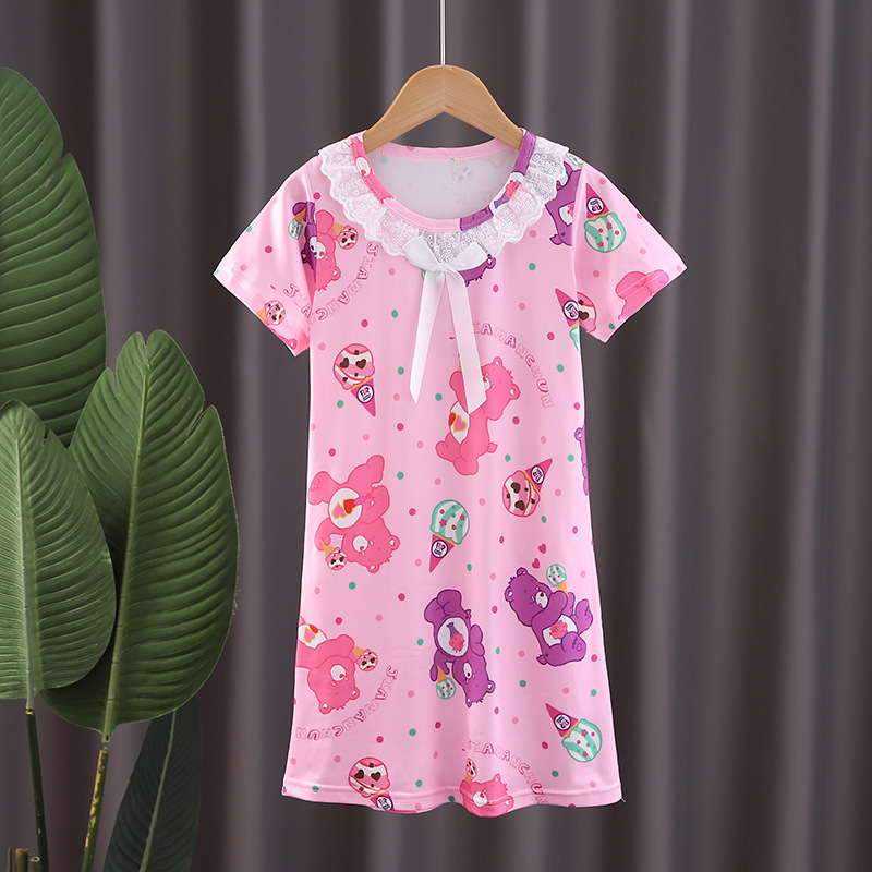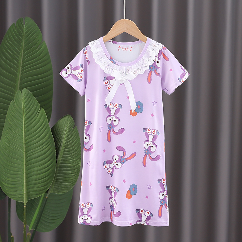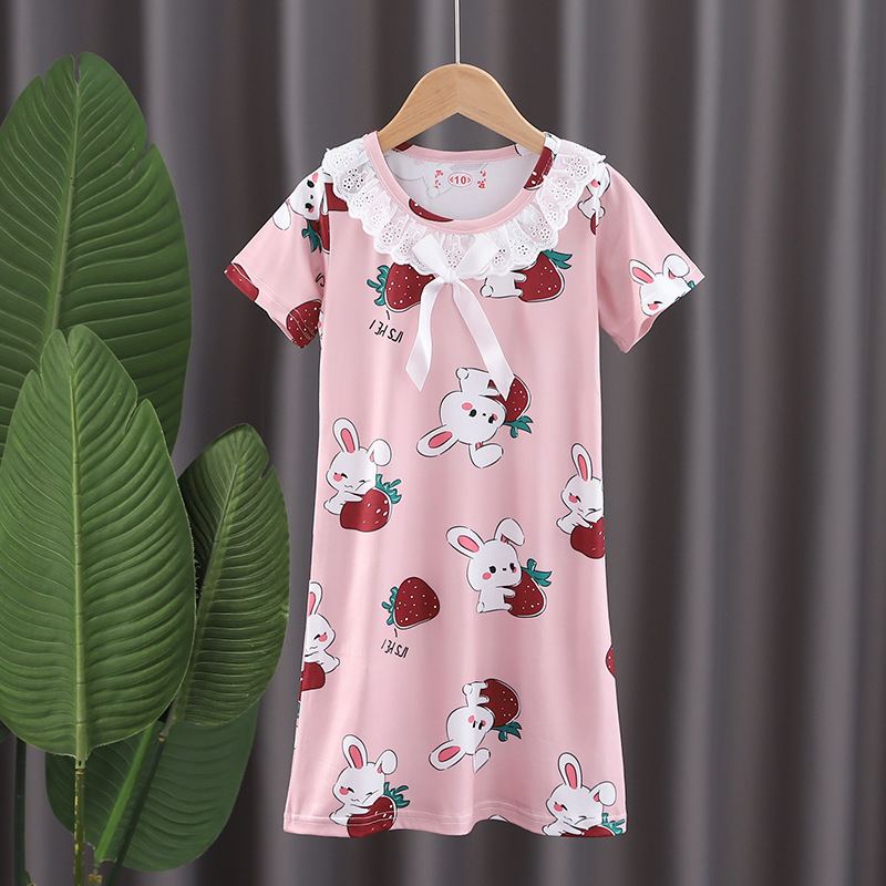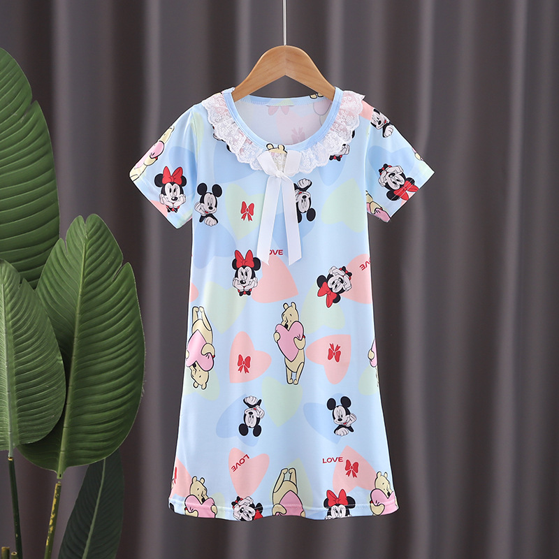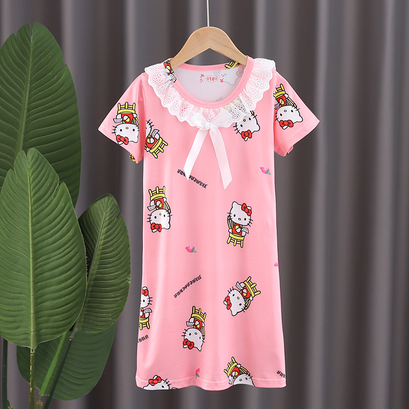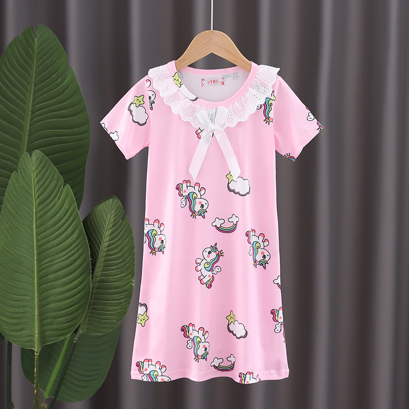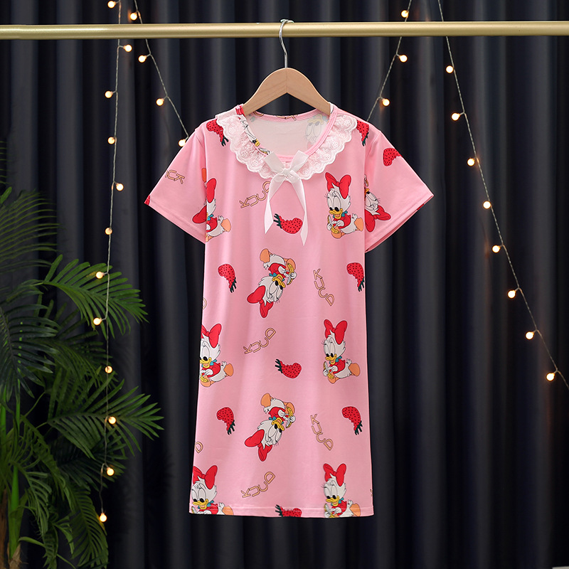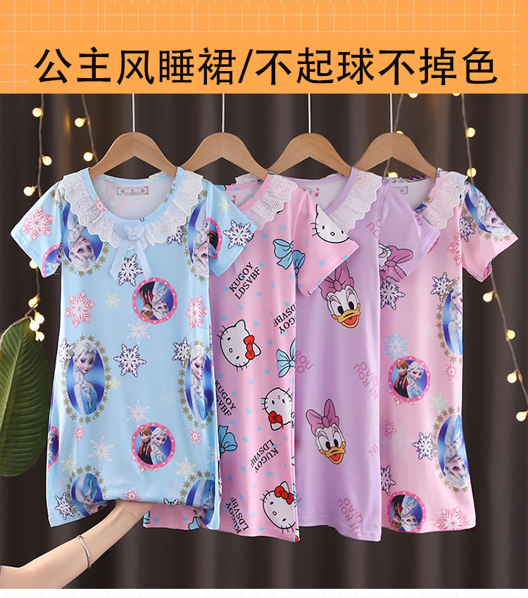 어린이 잠옷 여아 잠옷 여름 반팔 아기의 얇은 레이스 스커트 어린 소녀의 만화 중간 및 큰 어린이 가정복스토어 가기