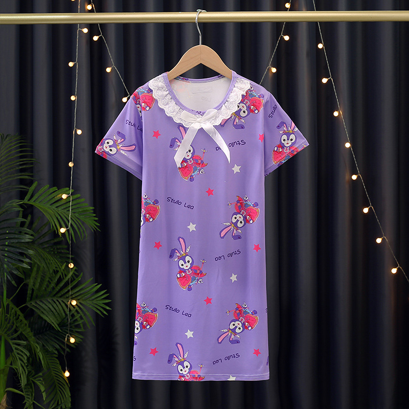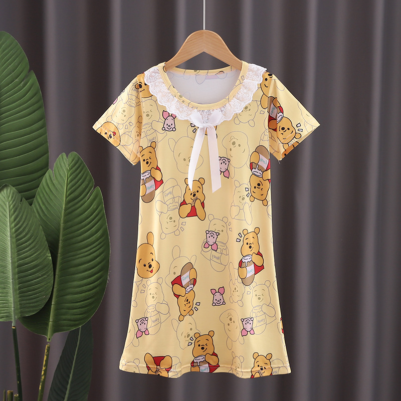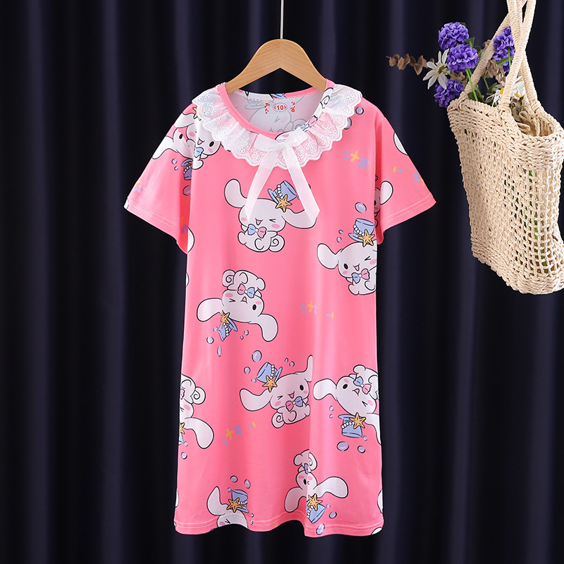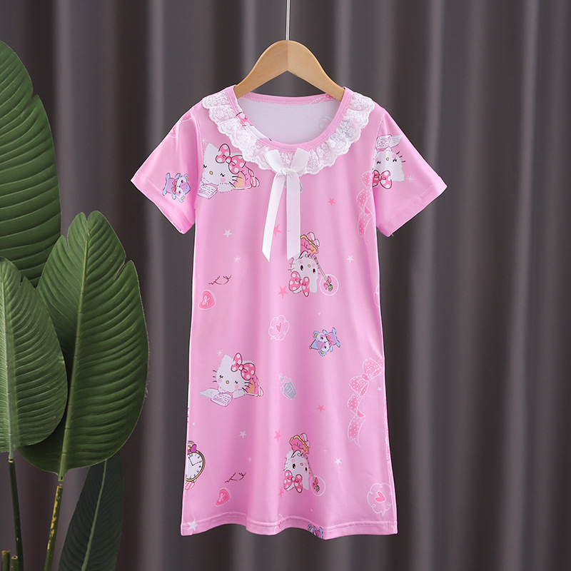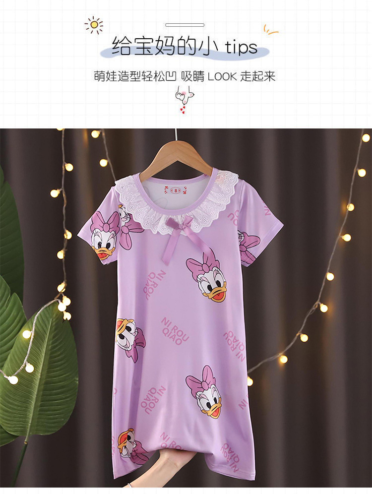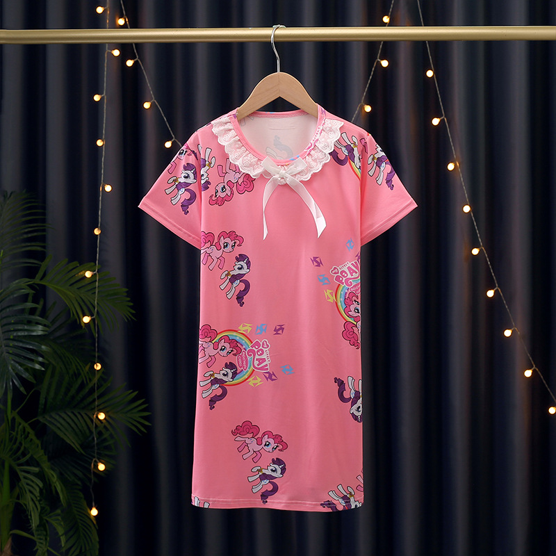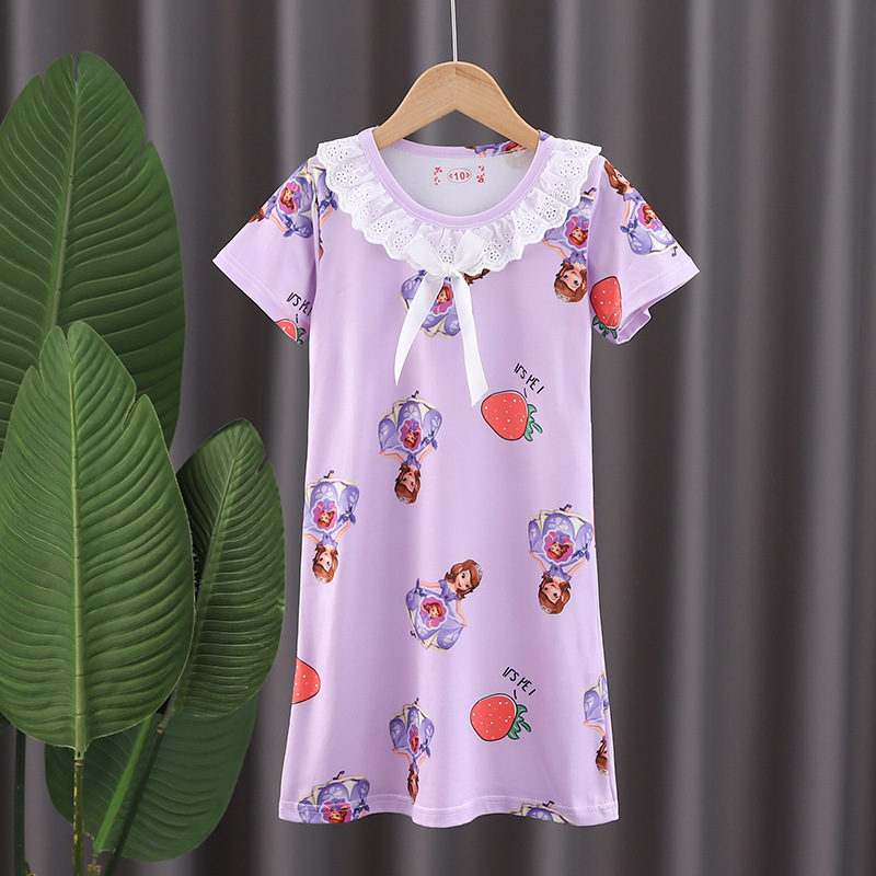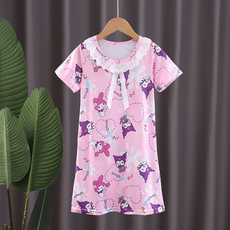 어린이 잠옷 여아 잠옷 여름 반팔 아기의 얇은 레이스 스커트 어린 소녀의 만화 중간 및 큰 어린이 가정복스토어 가기