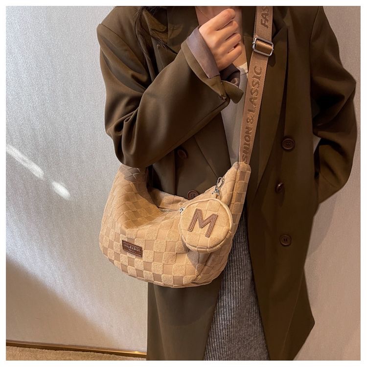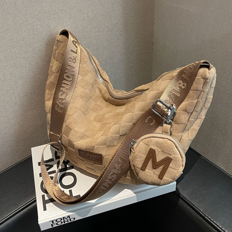 • 벨벳 체크 마더백 다크 브라운