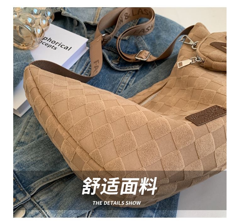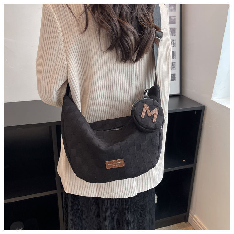 • 벨벳 격자 무늬 마더 백 블랙