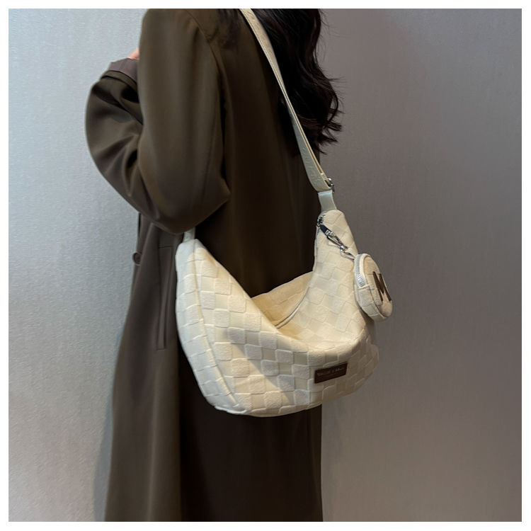 • 벨벳 격자 무늬 편지 쌀 화이트