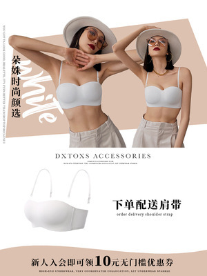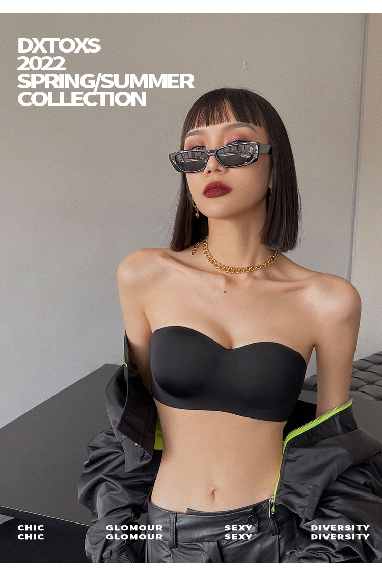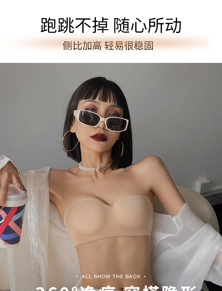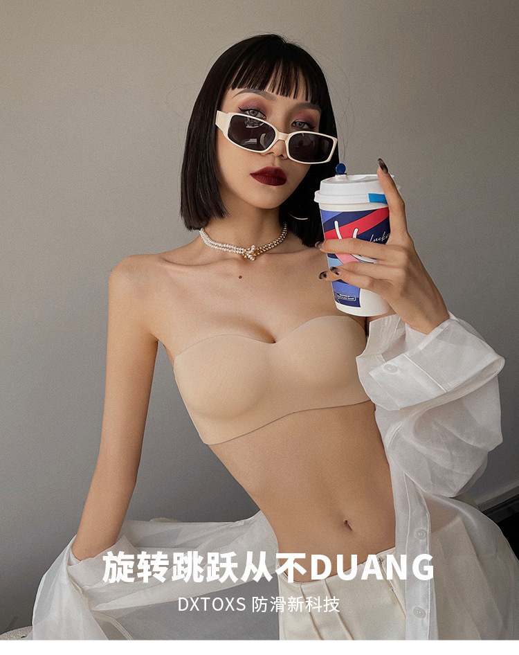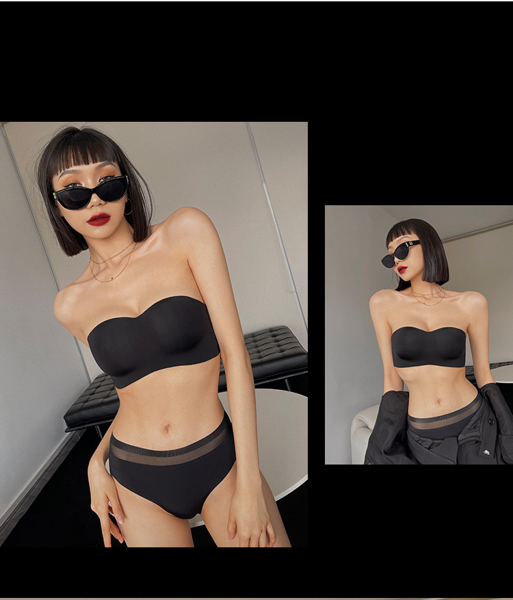 추적없는 끈이없는 속옷 여자의 얇은 작은 가슴 푸시 업 무테 튜브 탑 미끄럼 방지 보이지 않는 등 브래지어 세트스토어 가기
