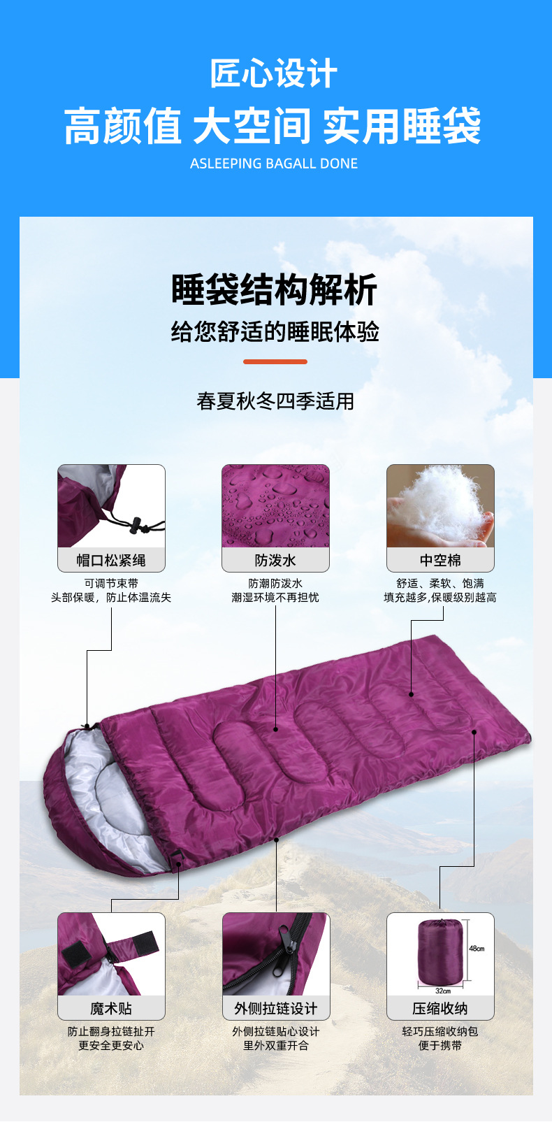 침낭 성인 야외 캠핑 점심 시간 따뜻한 더러운 비상 휴대용 재고 세대 사계절 침낭스토어 가기