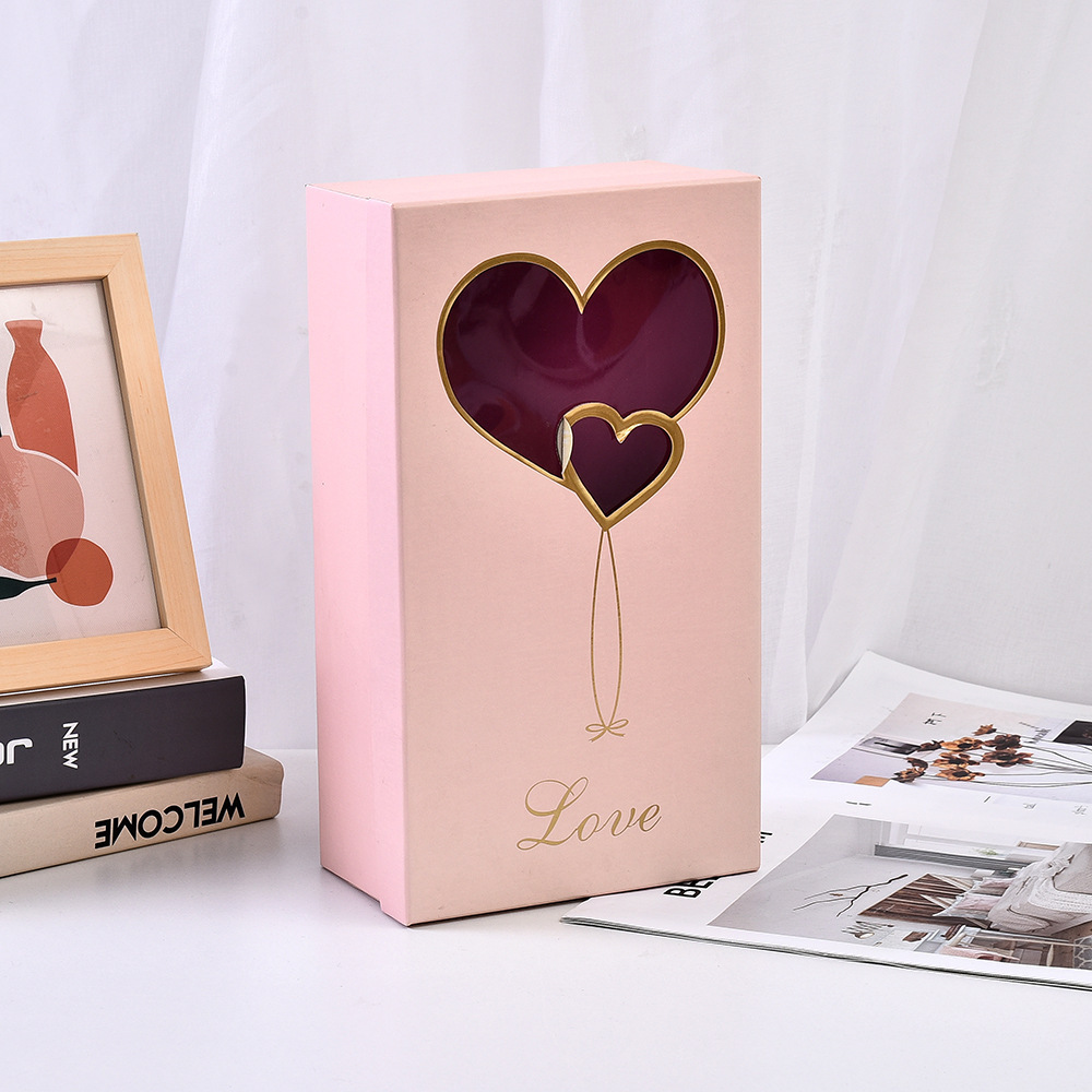 더블 러브 골든 투명 창 비누 꽃 꽃다발 선물 상자 발렌타인 데이 전자 상거래 뜨거운 선물 상자스토어 가기