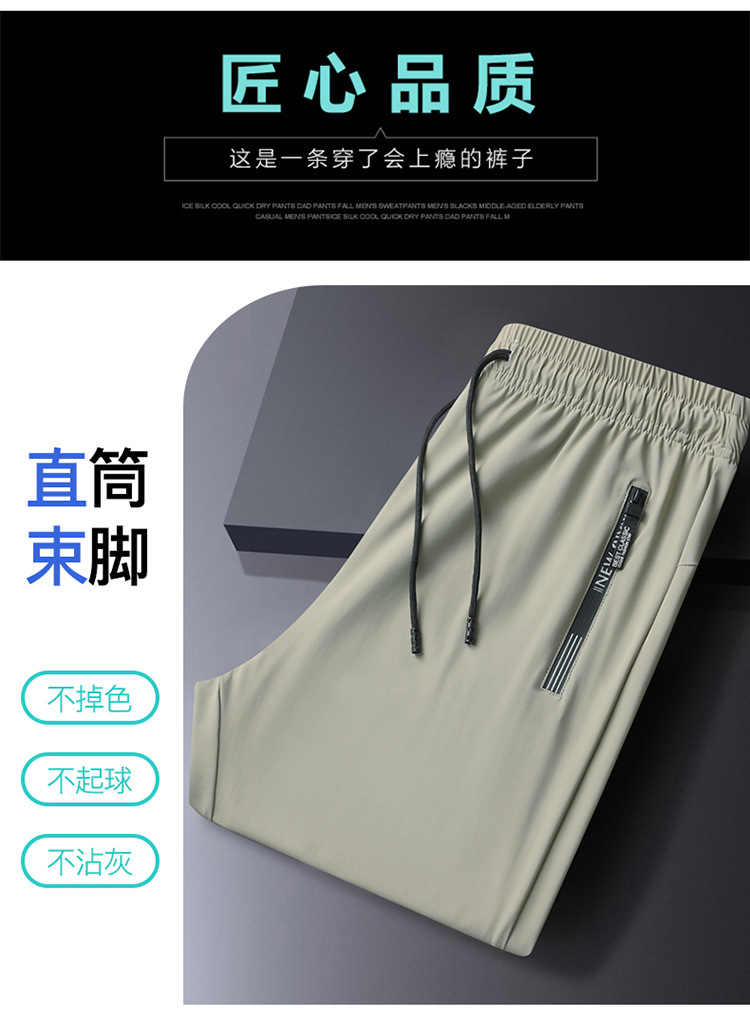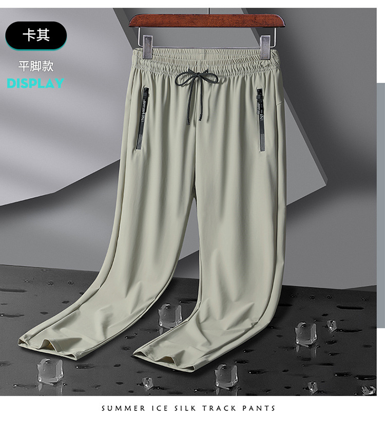 플러스 사이즈 여름 아이스 실크 바지 남성용 다리 스포츠 바지 고탄력 속건 캐주얼 바지 스트레이트 야외 통기성 에어컨 바지스토어 가기