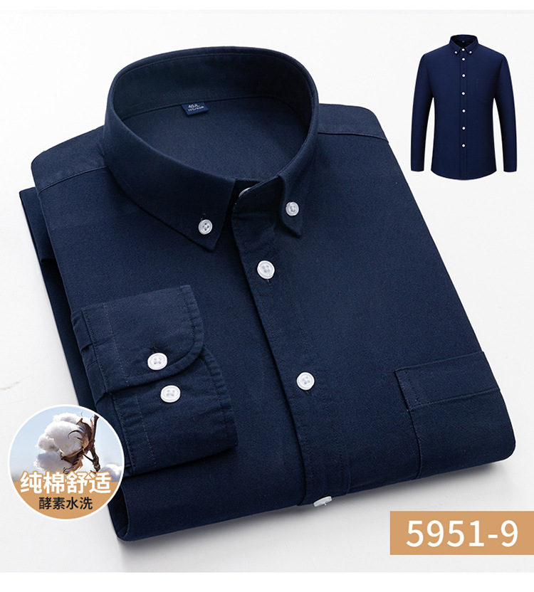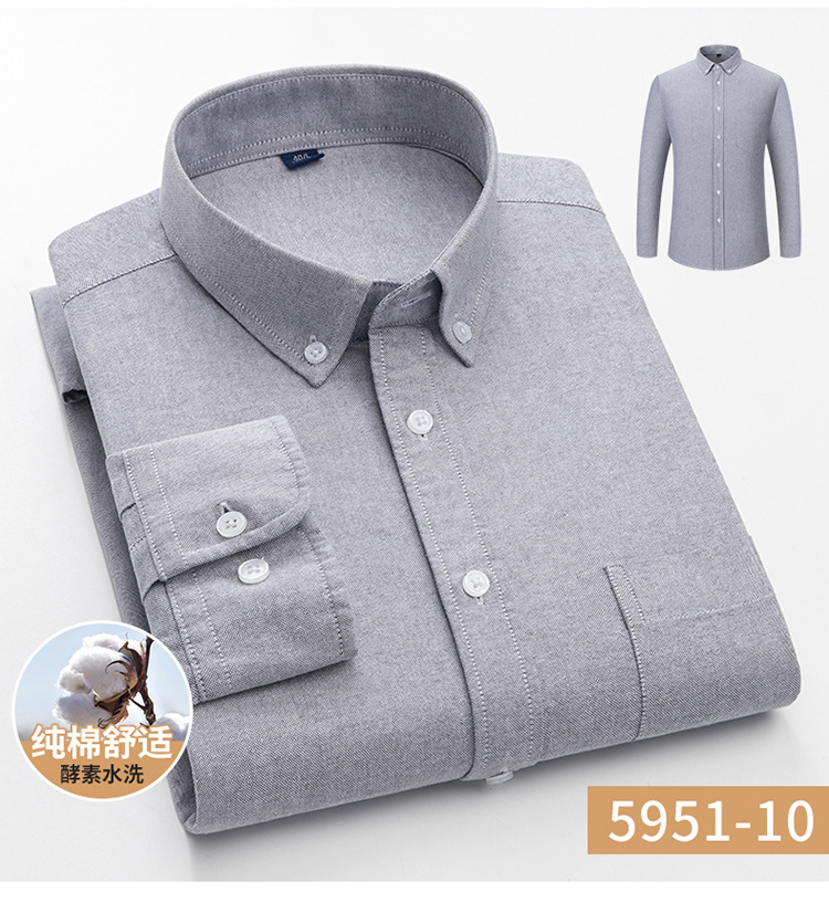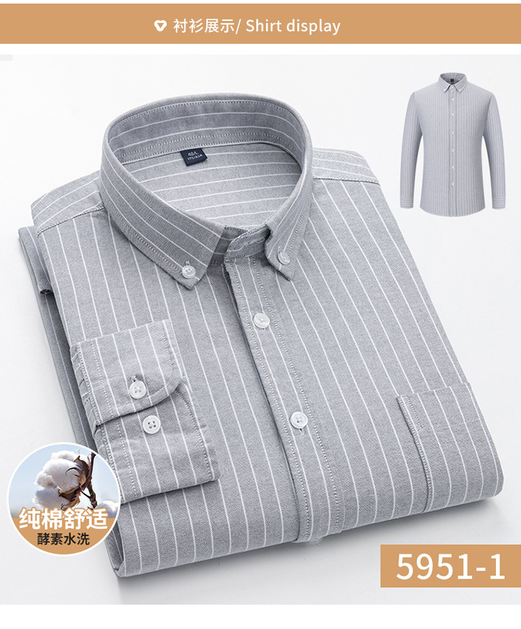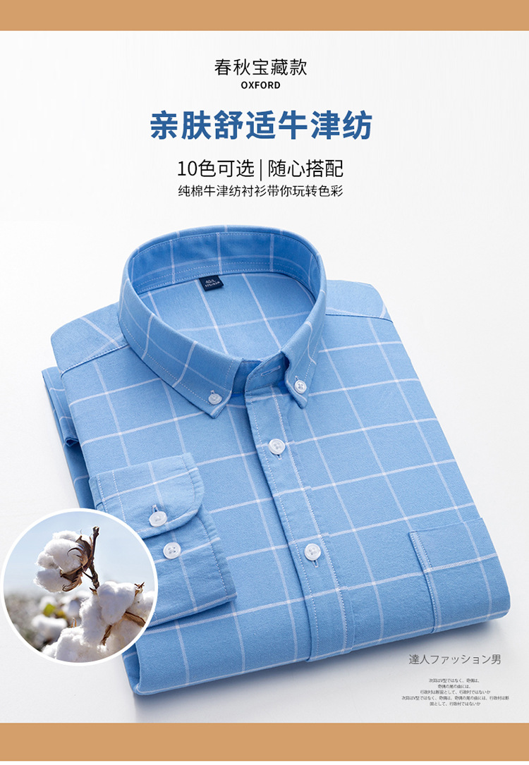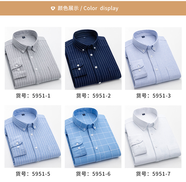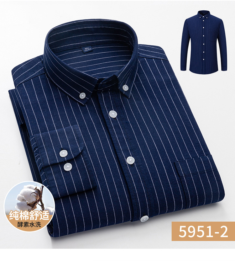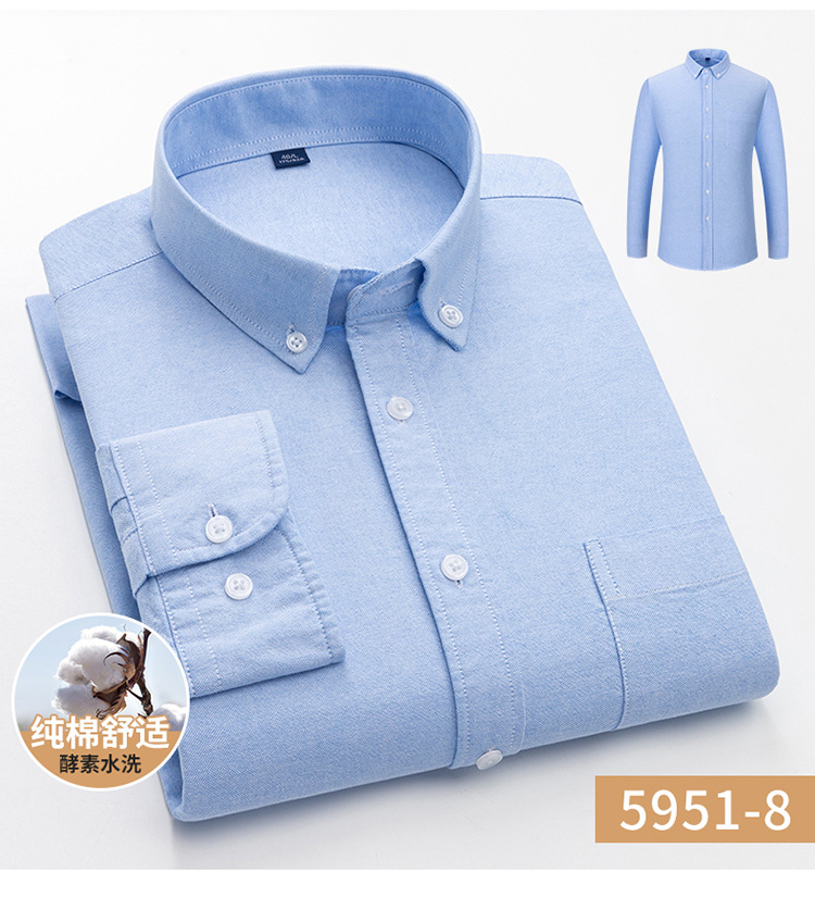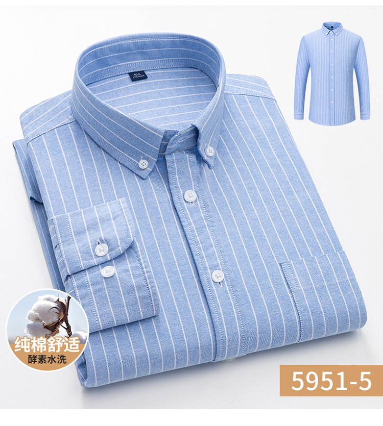 옥스포드 긴팔 셔츠 남성용 23 봄 캐주얼 셔츠 작업복 심플 스트라이프 퓨어 컬러 면 루즈한 셔츠 남성