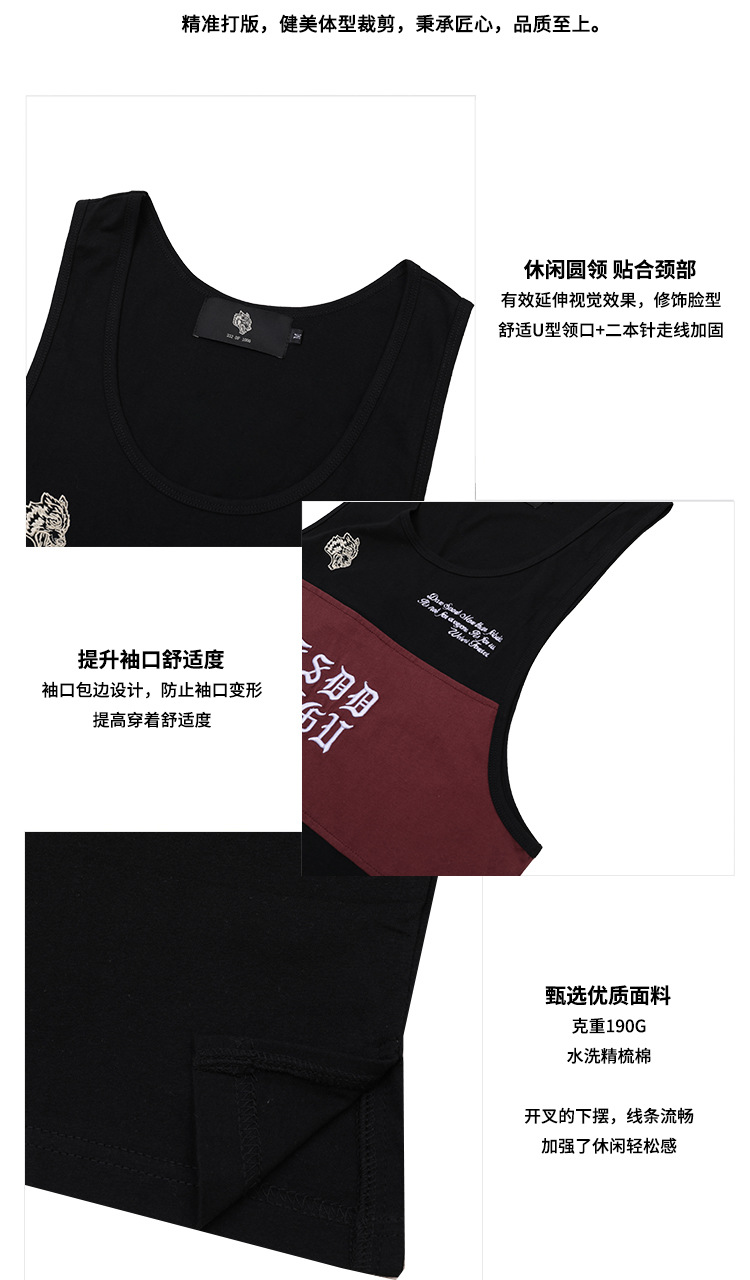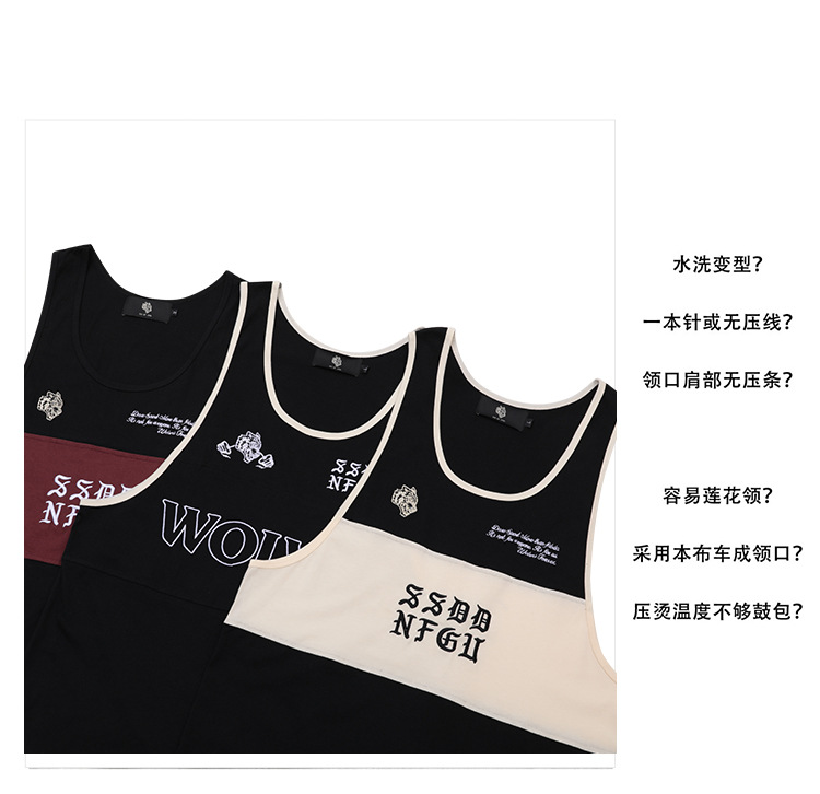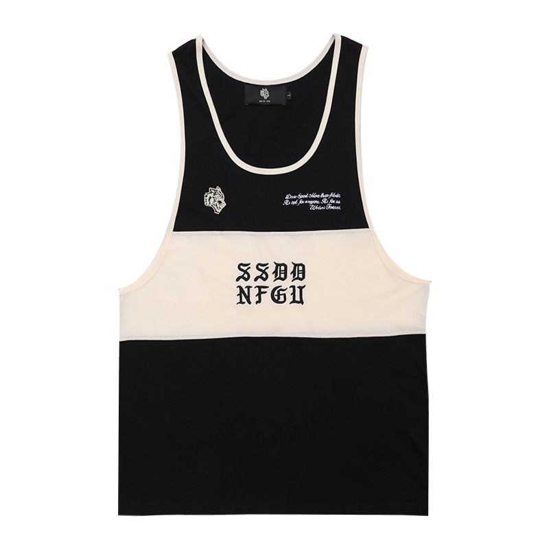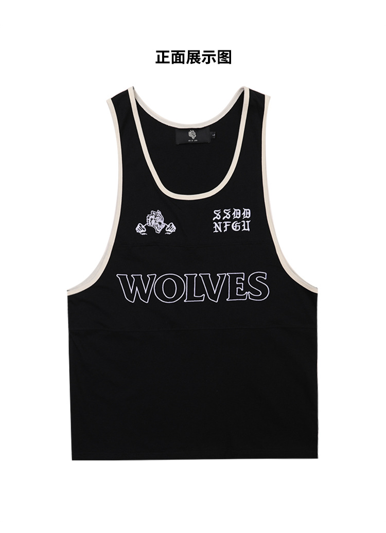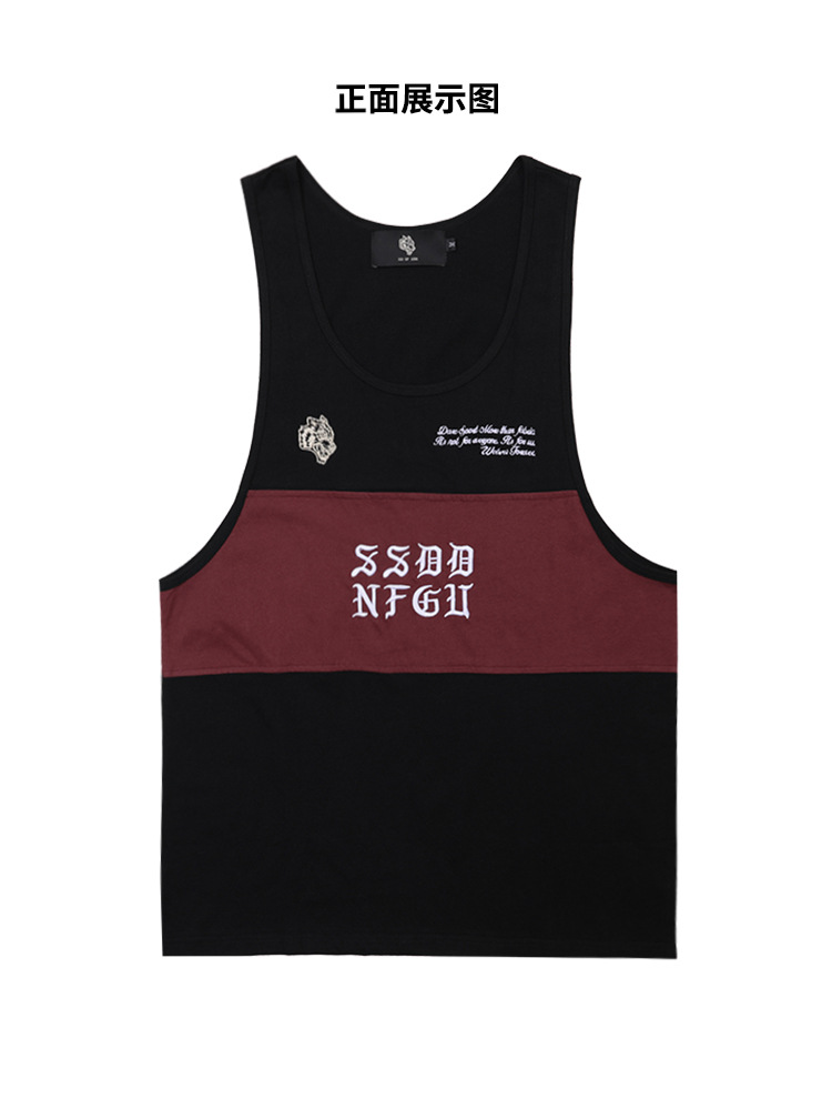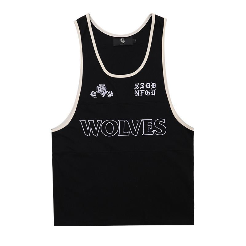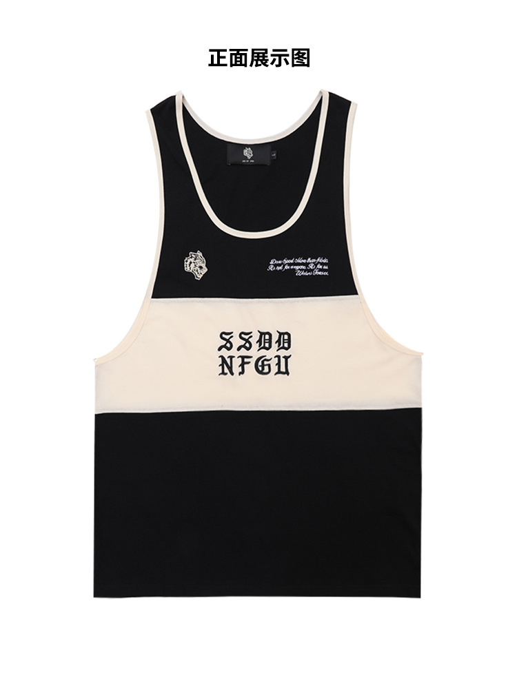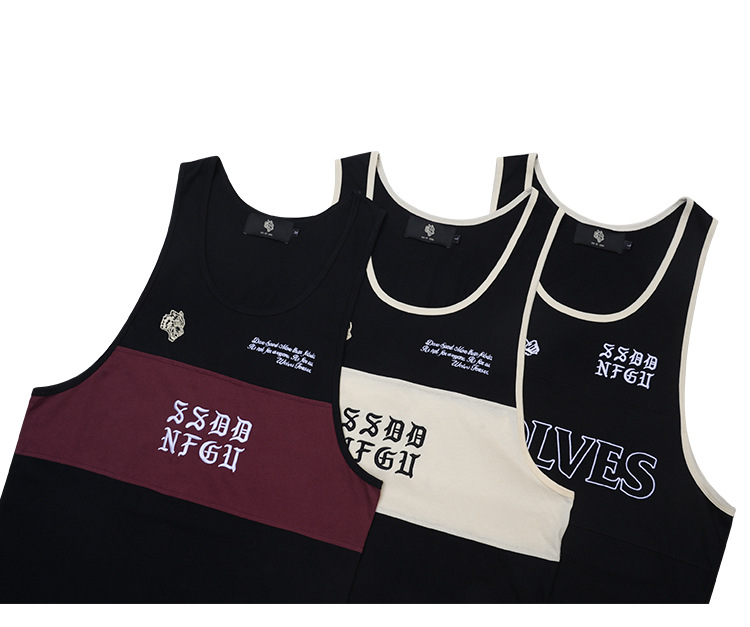 DARC 늑대 머리 유럽과 미국 여름 새로운 훈련 피트니스 트렌드 자수 색상 차단 순면 캐주얼 스포츠 조끼