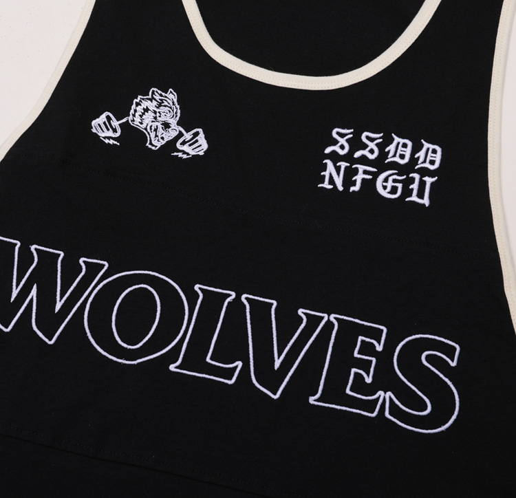 DARC 늑대 머리 유럽과 미국 여름 새로운 훈련 피트니스 트렌드 자수 색상 차단 순면 캐주얼 스포츠 조끼스토어 가기