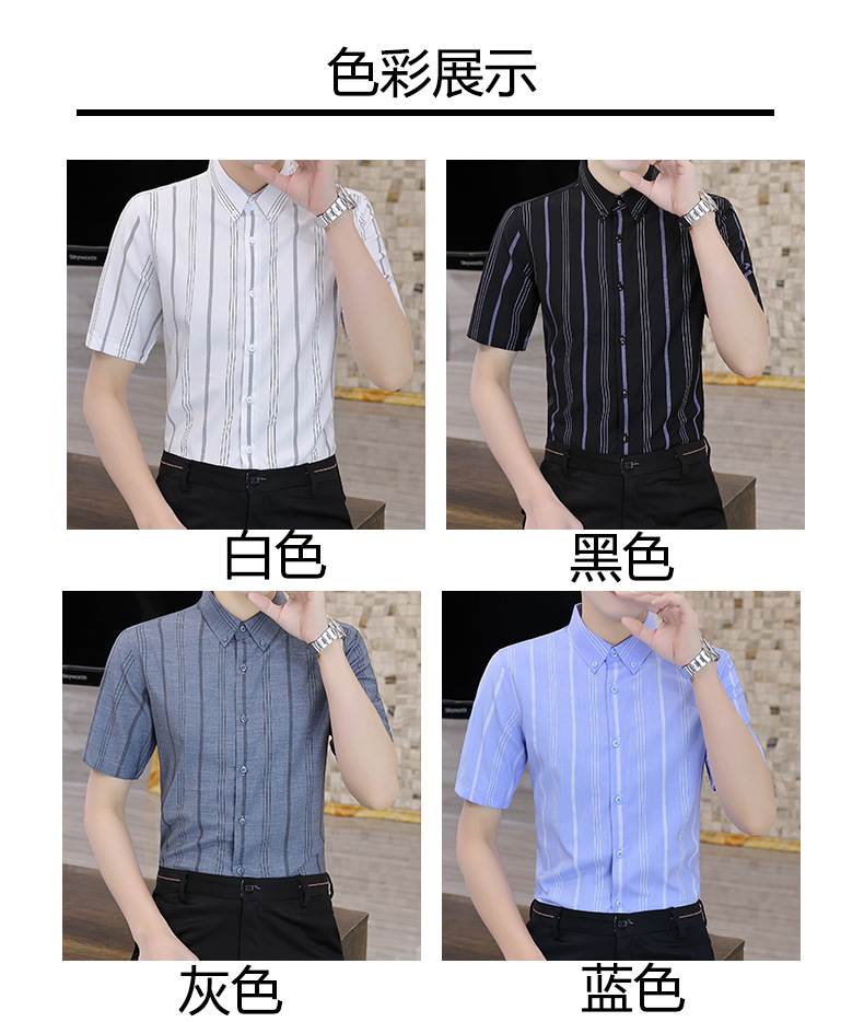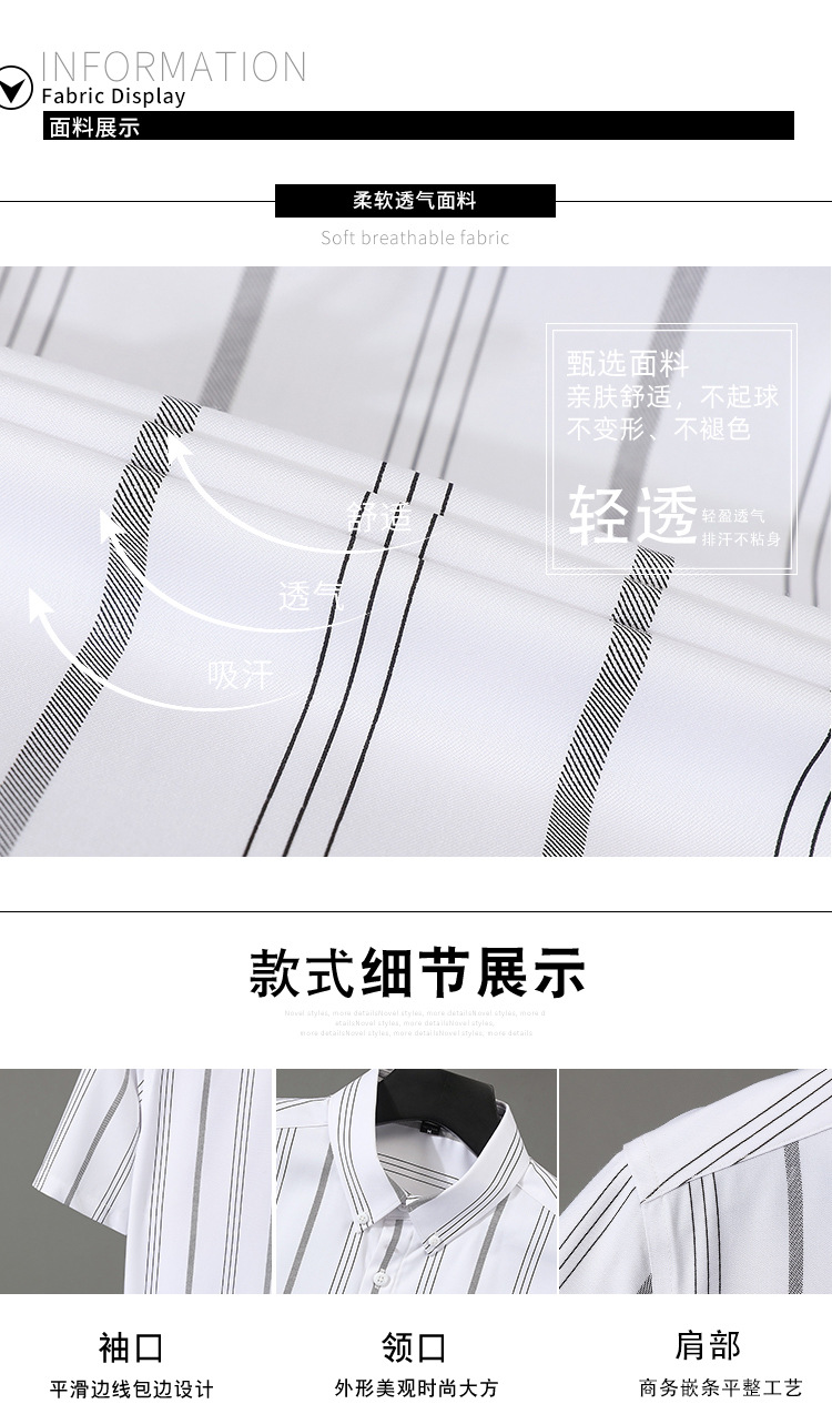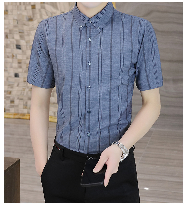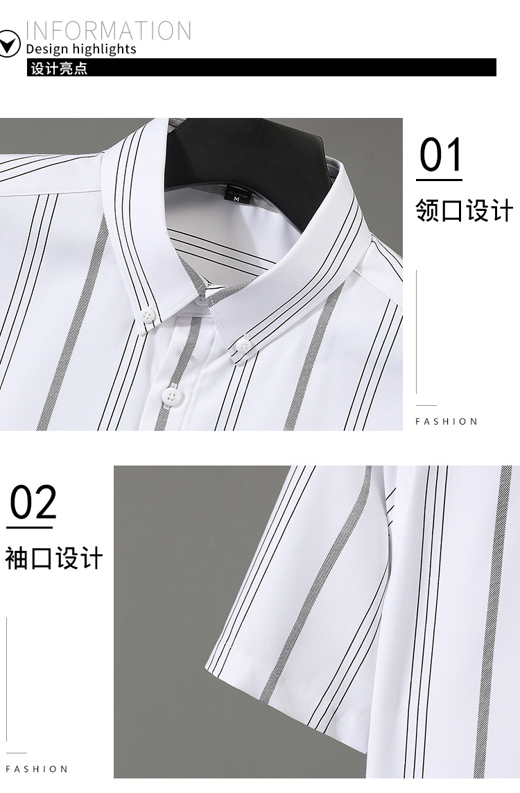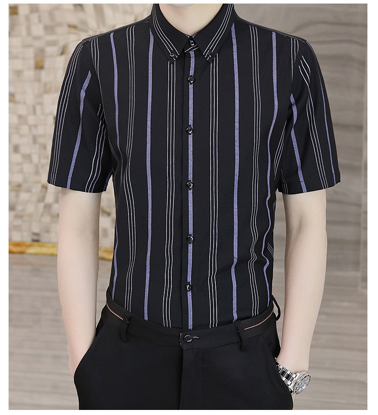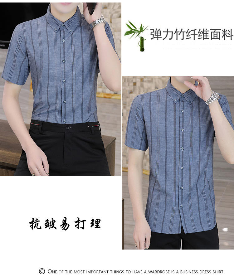 88060 [인기있는] 가벼운 고급 대나무 펄프 섬유 스트라이프 짧은 소매 셔츠스토어 가기