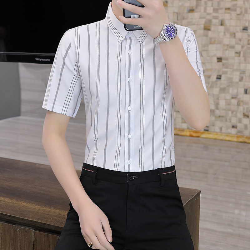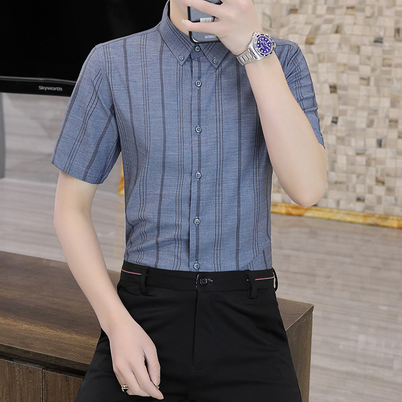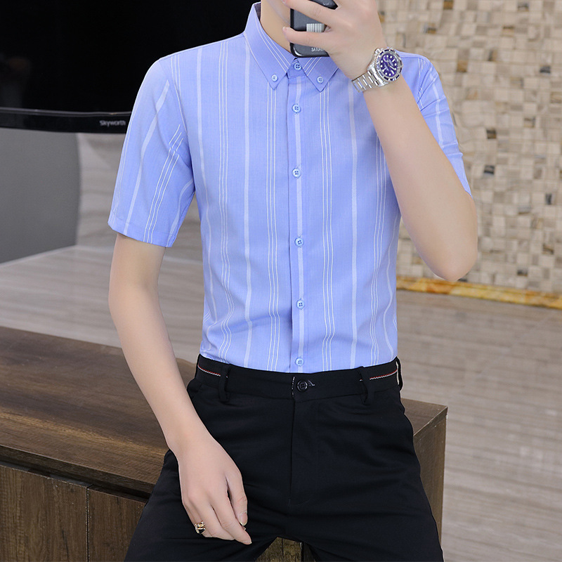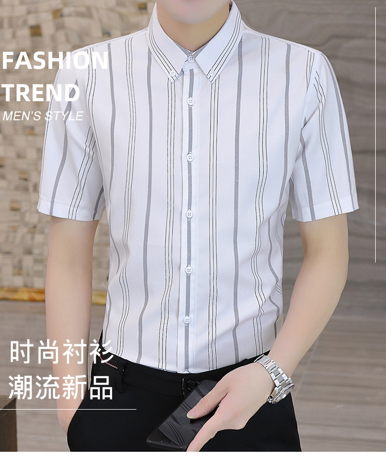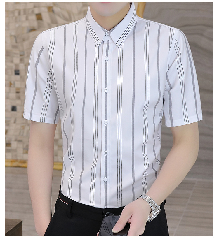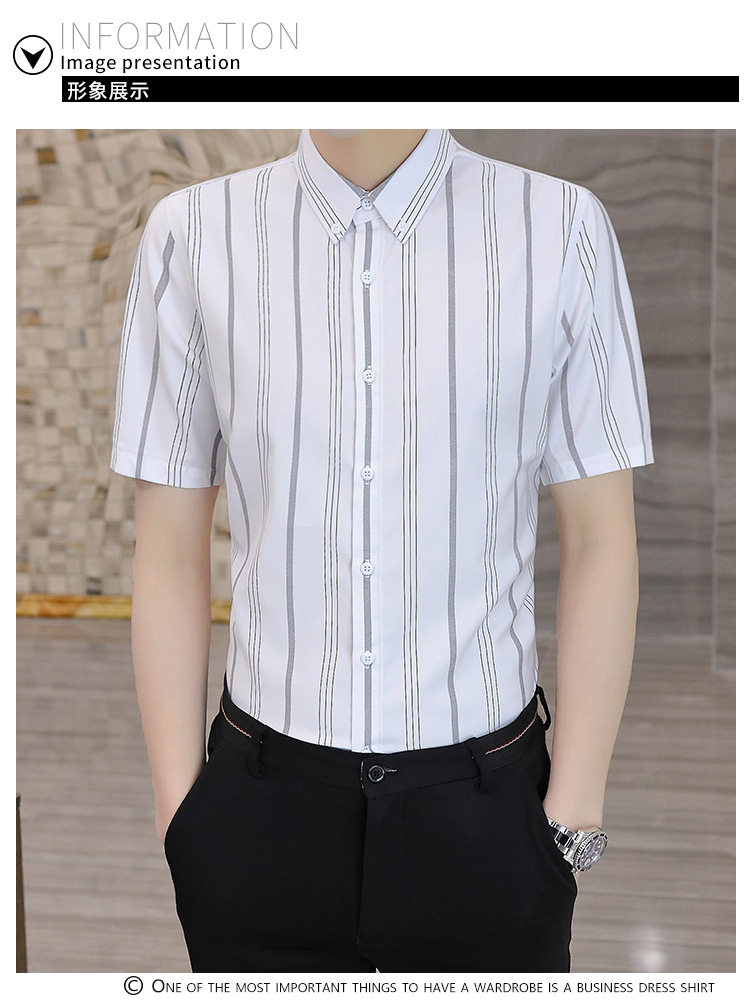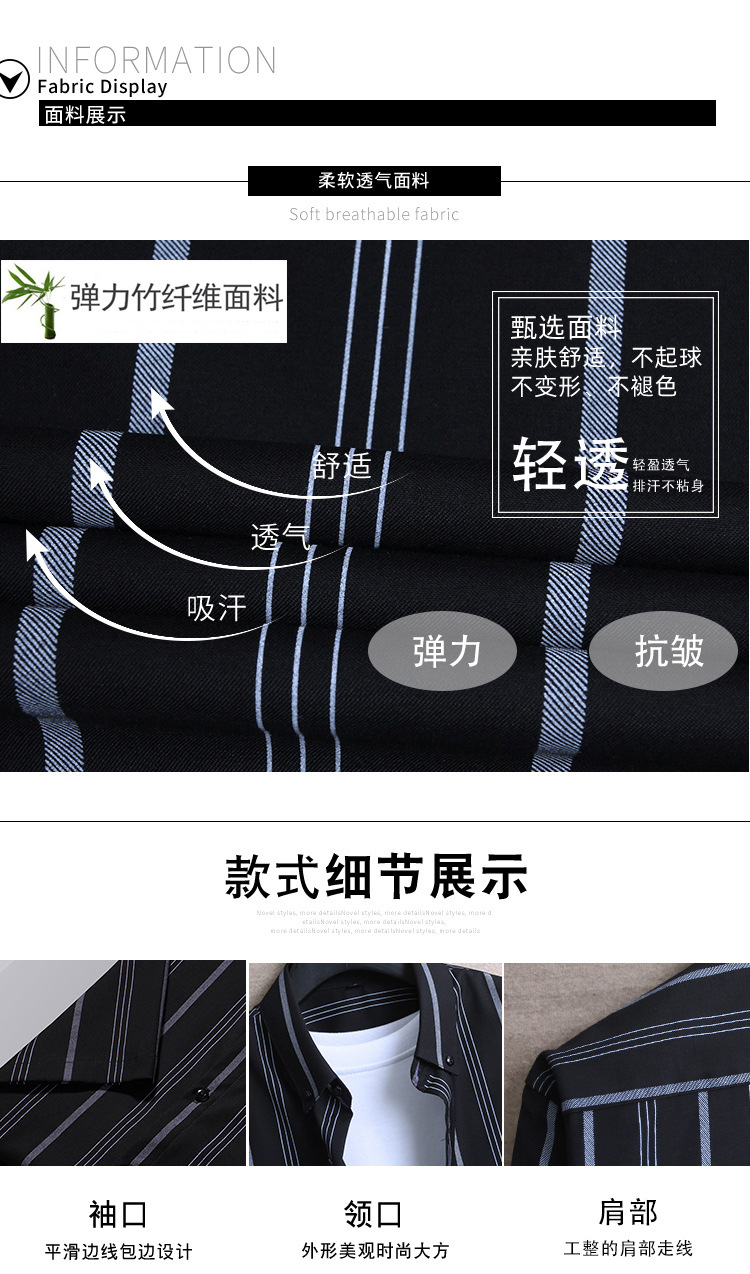 88060 [인기있는] 가벼운 고급 대나무 펄프 섬유 스트라이프 짧은 소매 셔츠스토어 가기