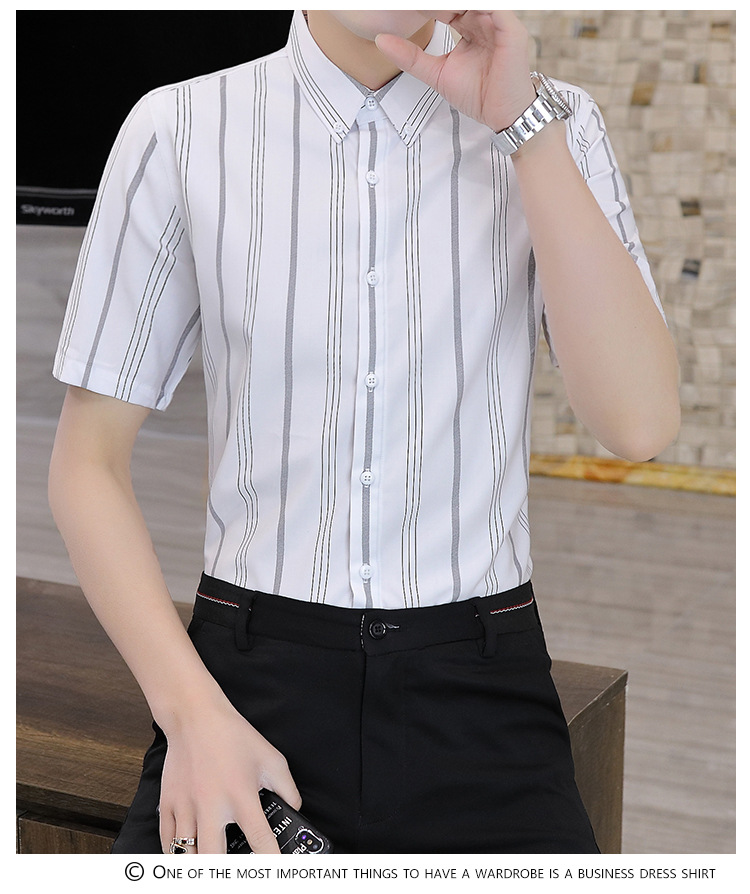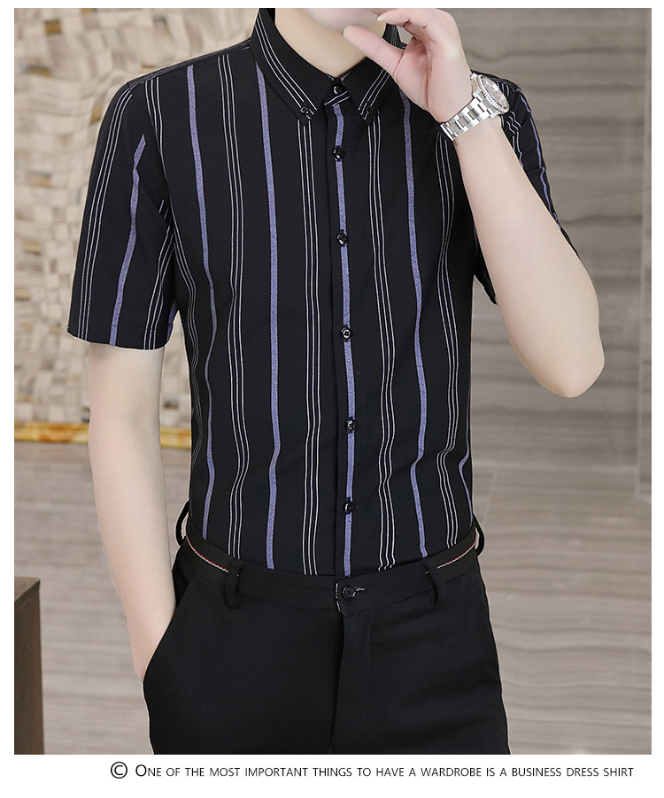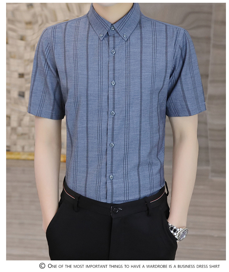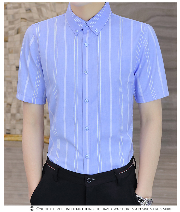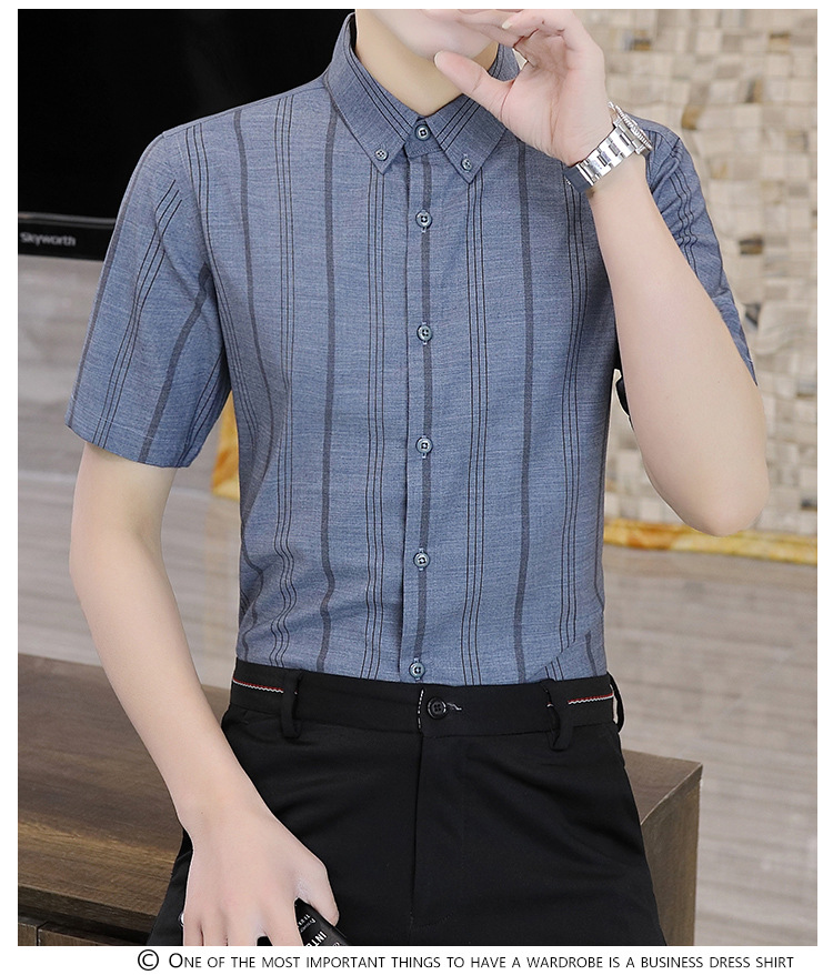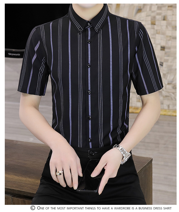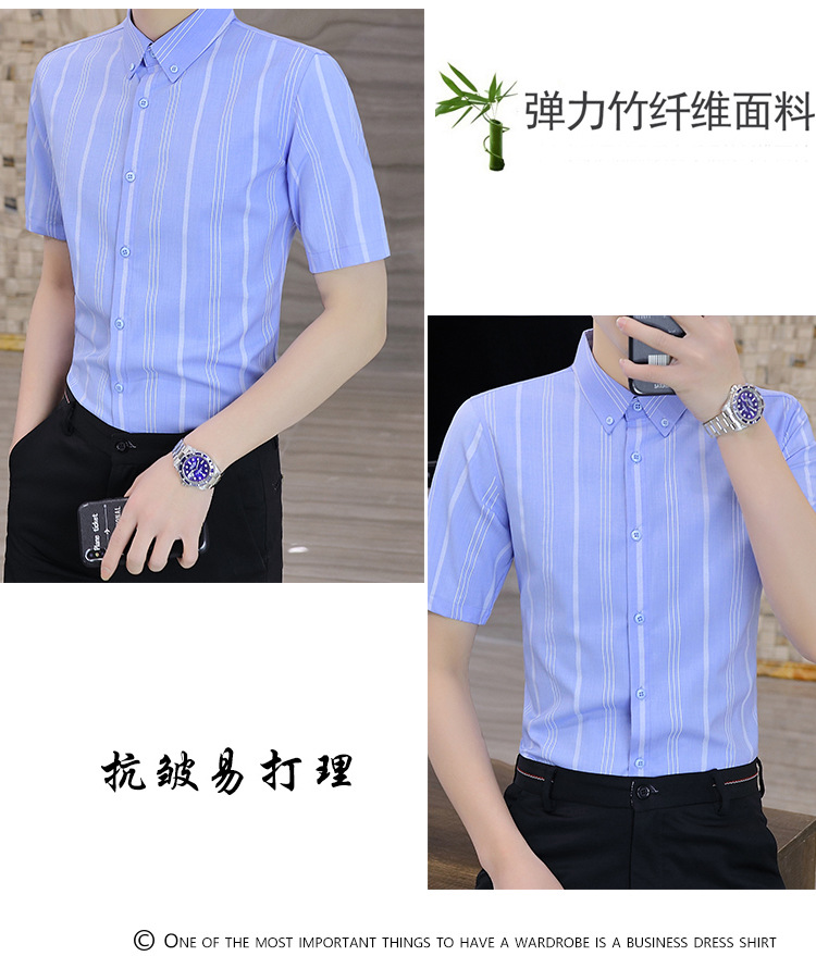 88060 [인기있는] 가벼운 고급 대나무 펄프 섬유 스트라이프 짧은 소매 셔츠