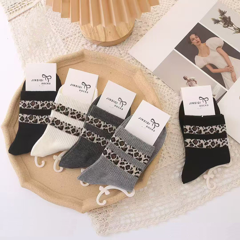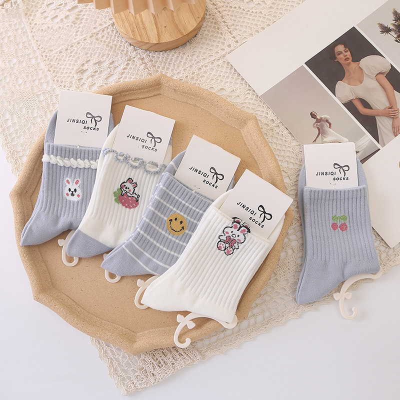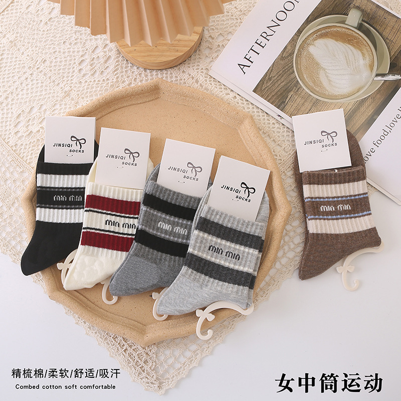 가을 겨울 신상 여성 중목 양말 페어 아일 만화 스포츠 양말 통기성 귀여운 커피색 면 양말 도매스토어 가기