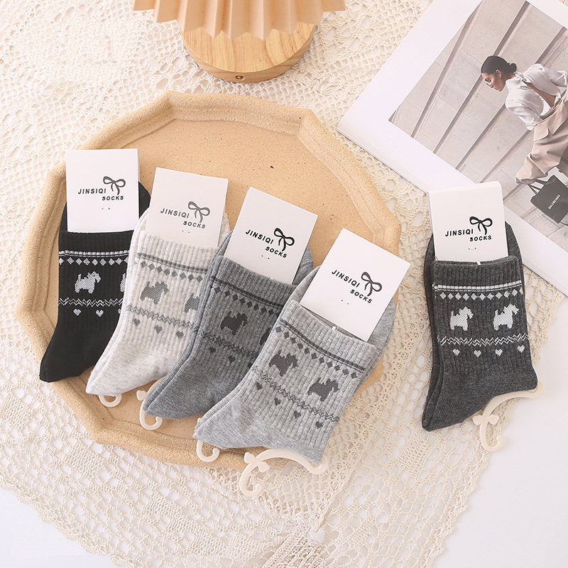 가을 겨울 신상 여성 중목 양말 페어 아일 만화 스포츠 양말 통기성 귀여운 커피색 면 양말 도매