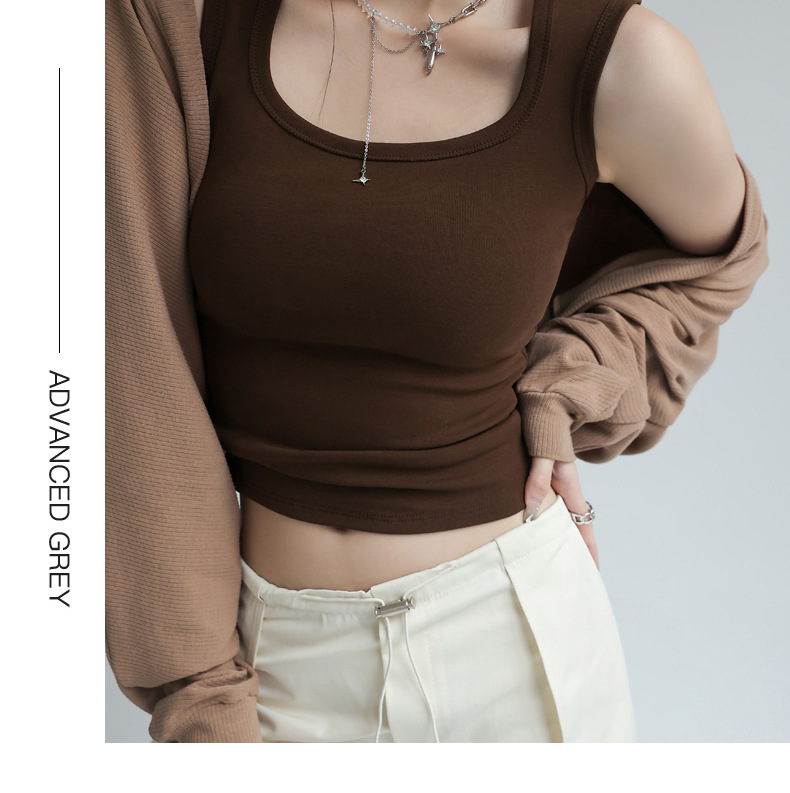 여성용 여름 겉옷을 위해베이스 민소매 슬링이있는 작은 조끼 세트 엄격한 선택 Instagram 인기있는 핫 걸 쇼트 탑