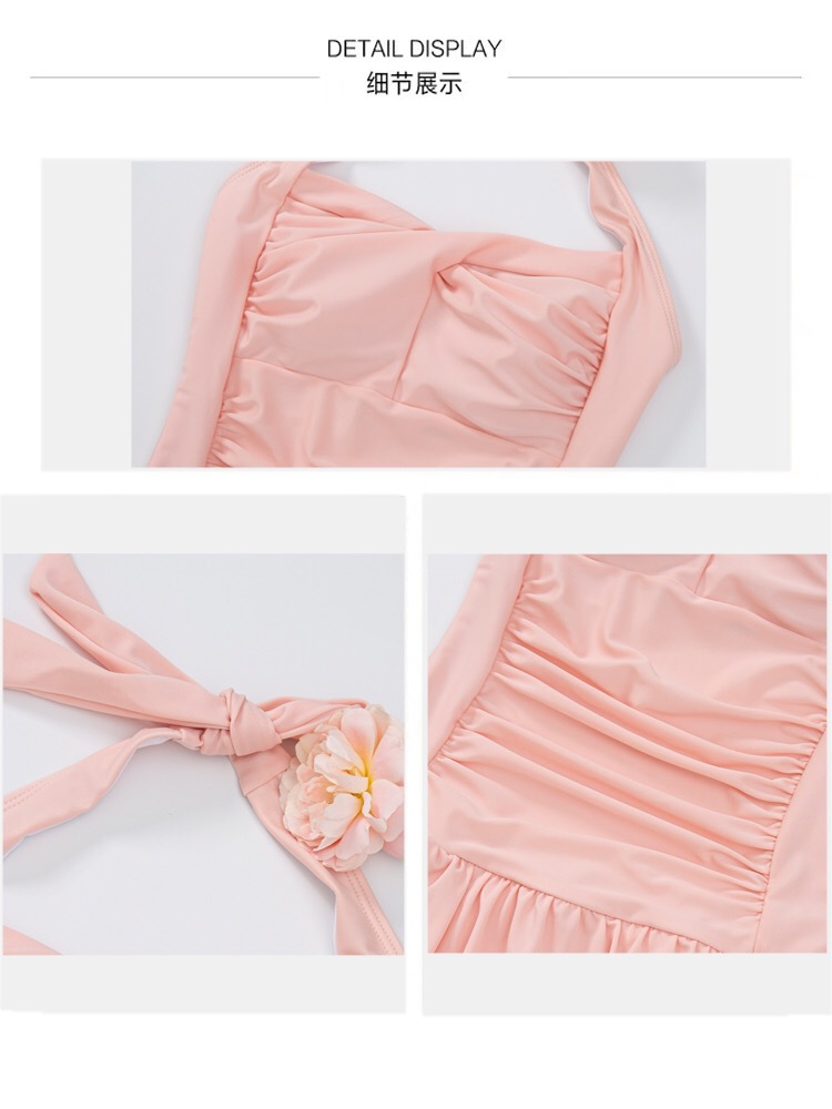 원피스 수영복 여성용 단색 작은 신선한 귀여운 파우더 배꼽 덮음 슬리밍 학생 스커트 온천 작은 가슴 모여 수영복