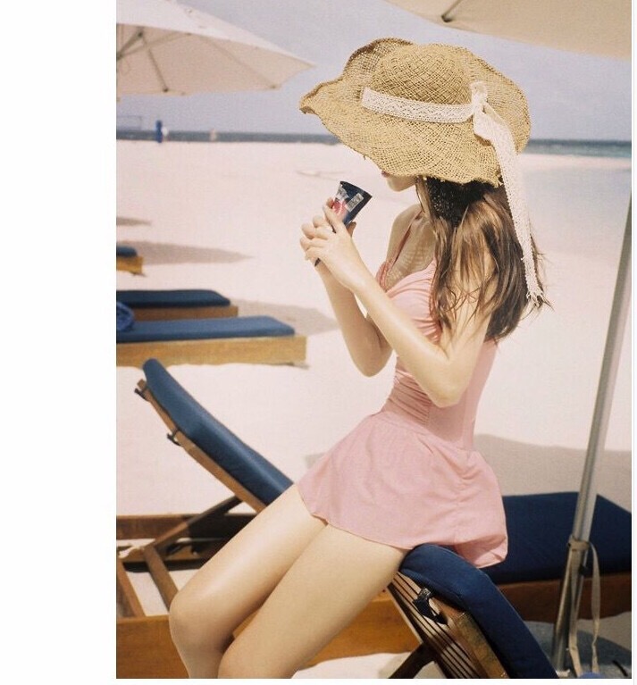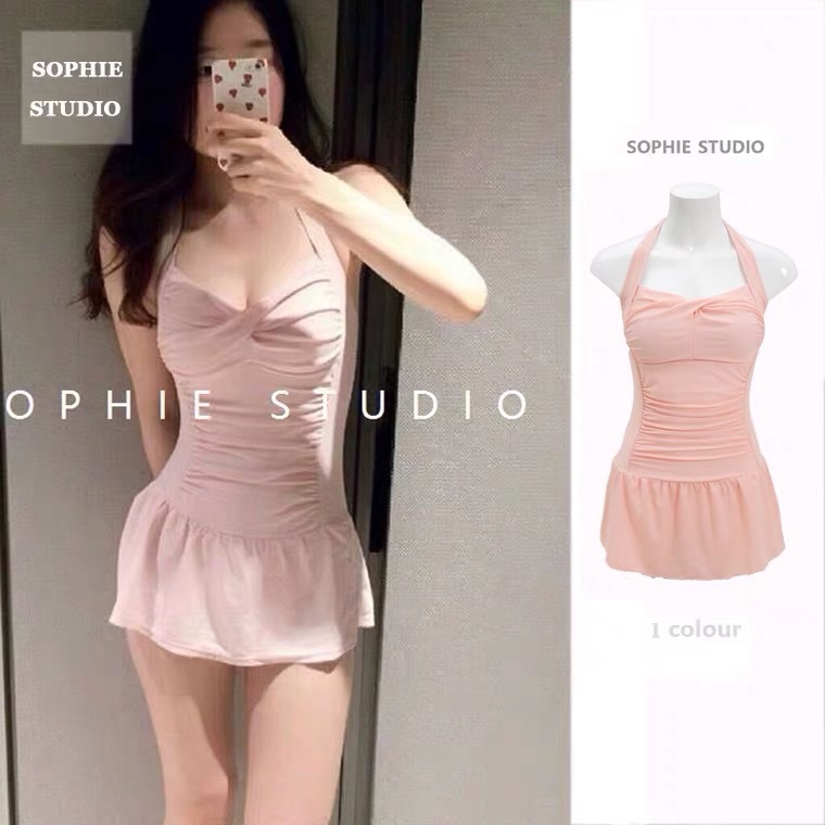 원피스 수영복 여성용 단색 작은 신선한 귀여운 파우더 배꼽 덮음 슬리밍 학생 스커트 온천 작은 가슴 모여 수영복스토어 가기