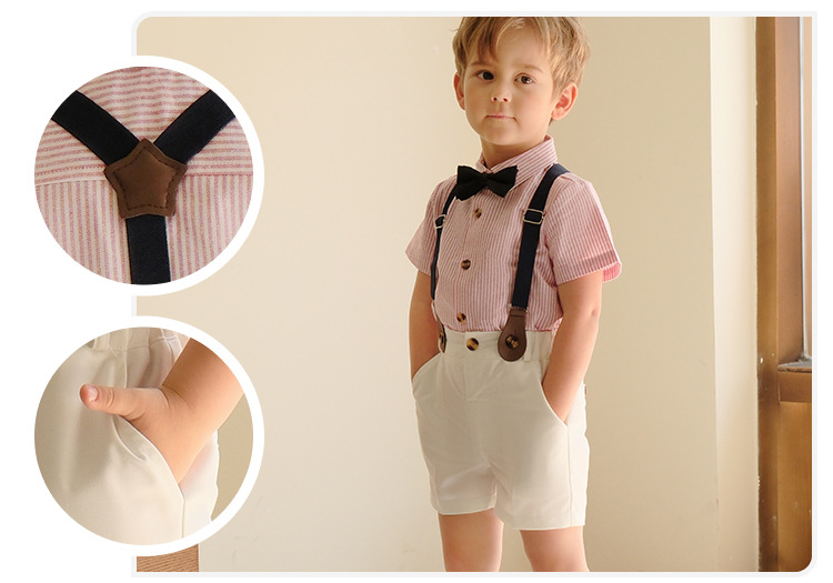 • [반팔 셔츠] 핑크 4 피스 세트 (반팔 셔츠 바지 Y5Y6 나비 넥타이 스트랩