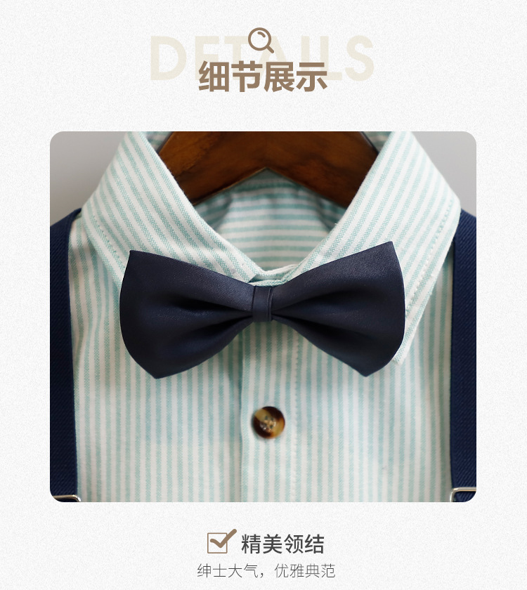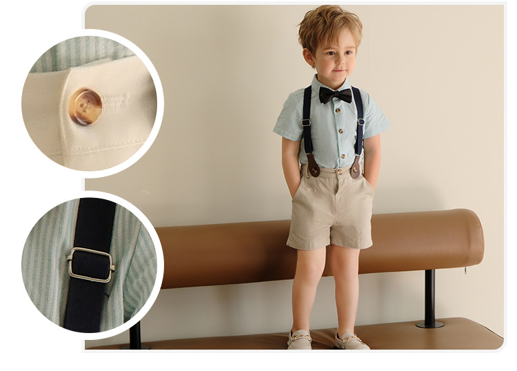 • 파우더 셔츠 + 카키 반바지 (스트랩, 나비 넥타이 포함)