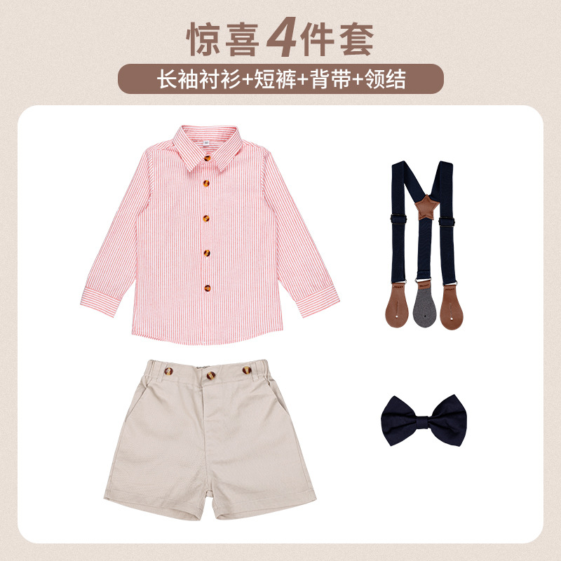 • 핑크 [긴팔+반바지] 4종세트 (긴팔셔츠+반바지+Y5Y6나비넥타이+멜빵)