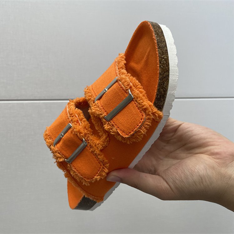 대외 무역 국경 대형 술 슬리퍼 여성 겉옷 2025 새로운 벨트 버클 코르크 바닥 캔버스 한 단어 샌들 여성스토어 가기