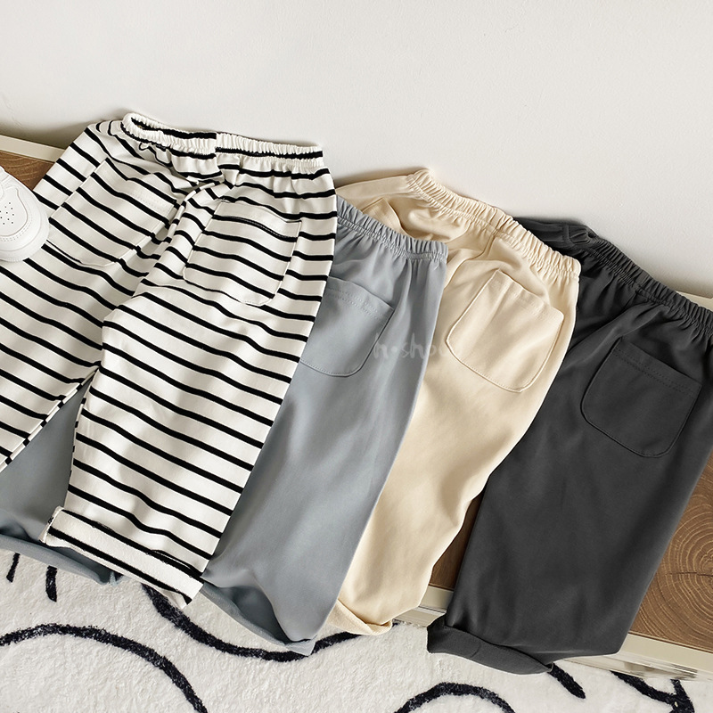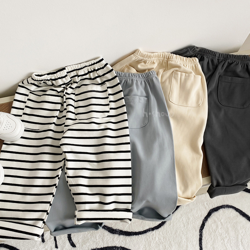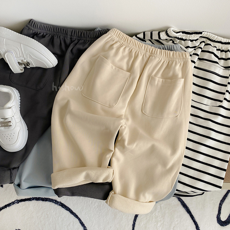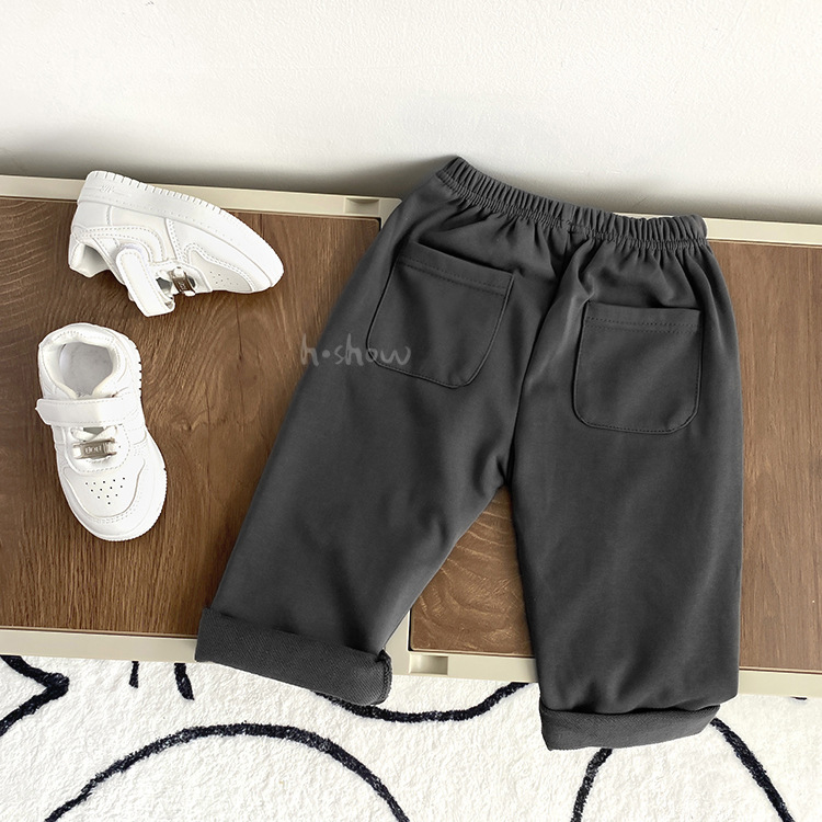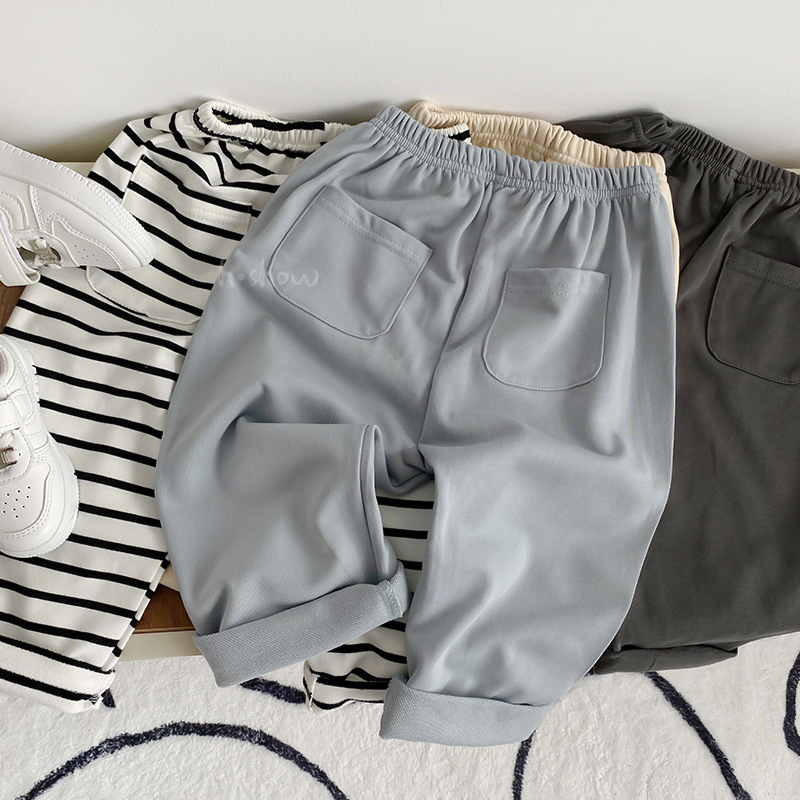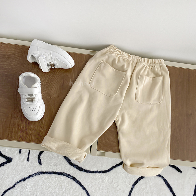 아기의 봄과 가을 여러 가지 빛깔의 크림프 포켓 스포츠 바지 편안한 패션 바지 어린 어린이 캐주얼 긴 바지 0039스토어 가기