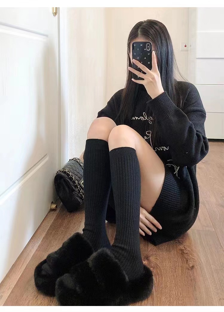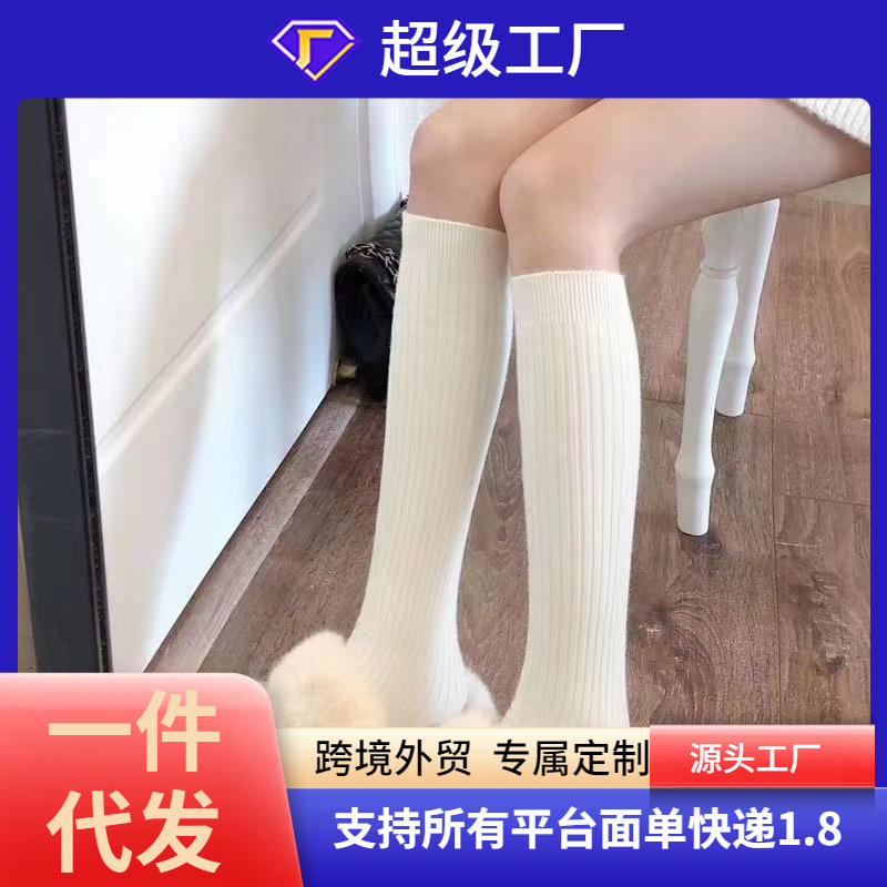 겨울 양말 줄무늬 우유 흰색 종아리 양말 여성용 jk 순수 바람 캐주얼 세로 줄무늬 일본 무릎 더미스토어 가기