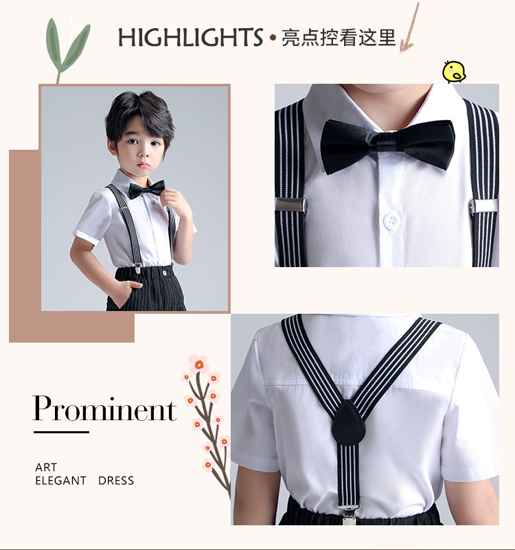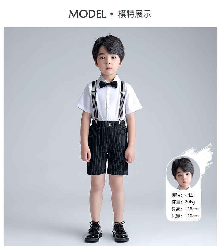 어린이 세트 봄과 여름 새로운 소년 스트랩 바지 세트 패션 한국 원피스 성능 대회 호스트 사진 의류