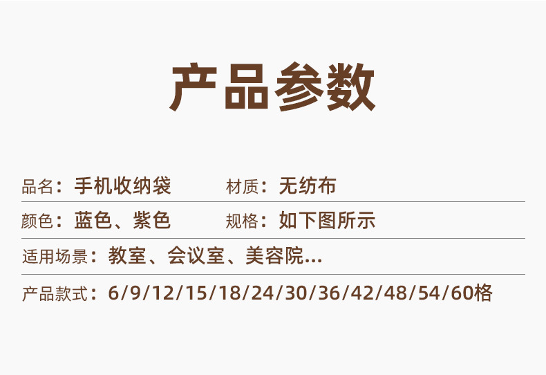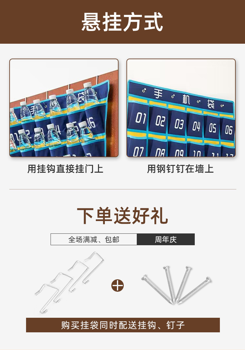 휴대 전화 보관 가방 벽걸이 가방 학생 수업 휴대 전화 보관 가방 교실 휴대 전화 가방 밧줄 건너 뛰기 벽걸이