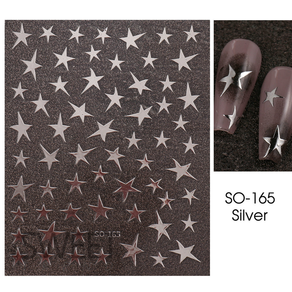 네일 아트 스티커 도매 그물 레드 골드와 실버 별 멀티 모양의 5 개 별 네일 스티커 데칼스토어 가기