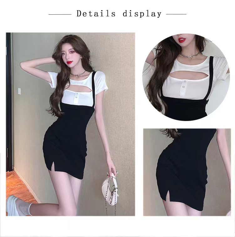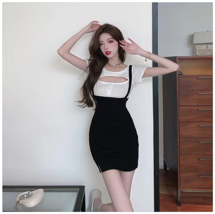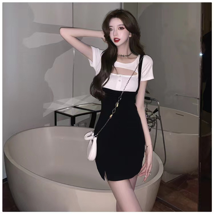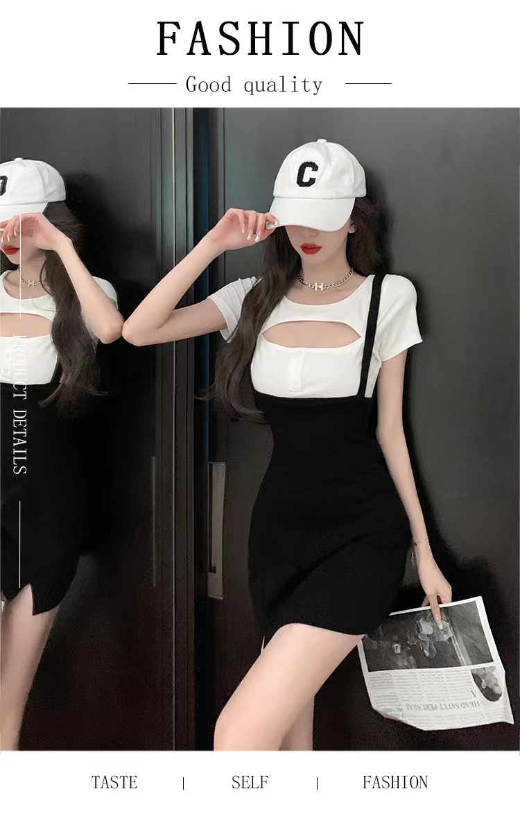 스파이스 걸 로얄 시스터 빛 성숙한 스타일 세트 여자의 2023 새로운 여름 스트랩 스커트 반팔 티셔츠 웨스턴 스타일 투피스 세트