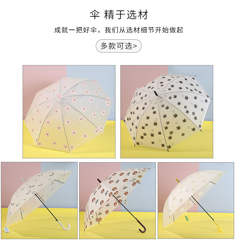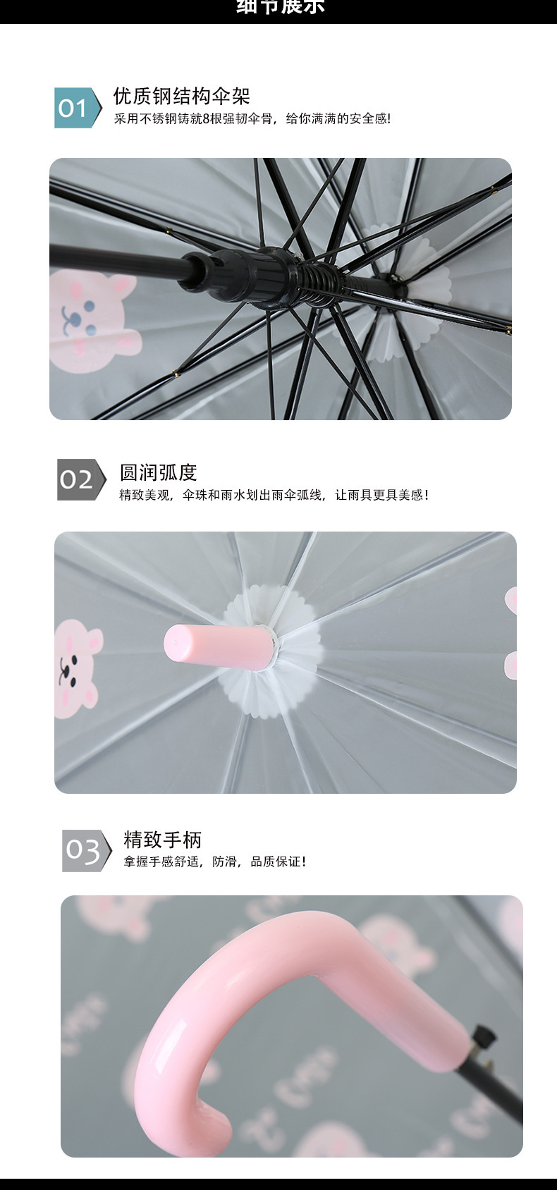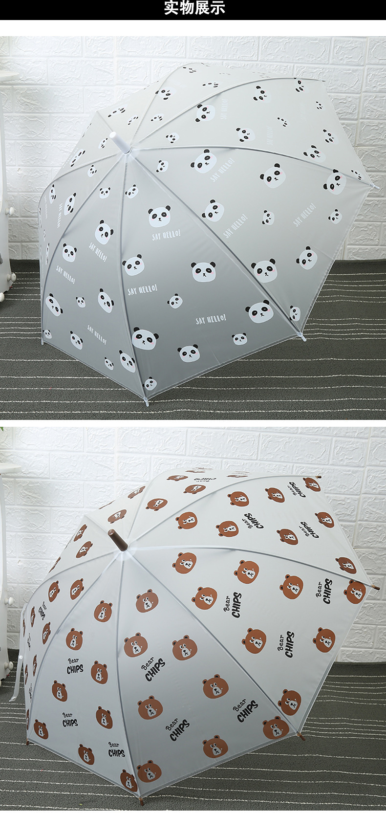 만화 투명 우산 야외 우산 맑고 비오는 우산 녹색 굵은 손잡이 스트레이트 롱 팬더 우산 도매스토어 가기