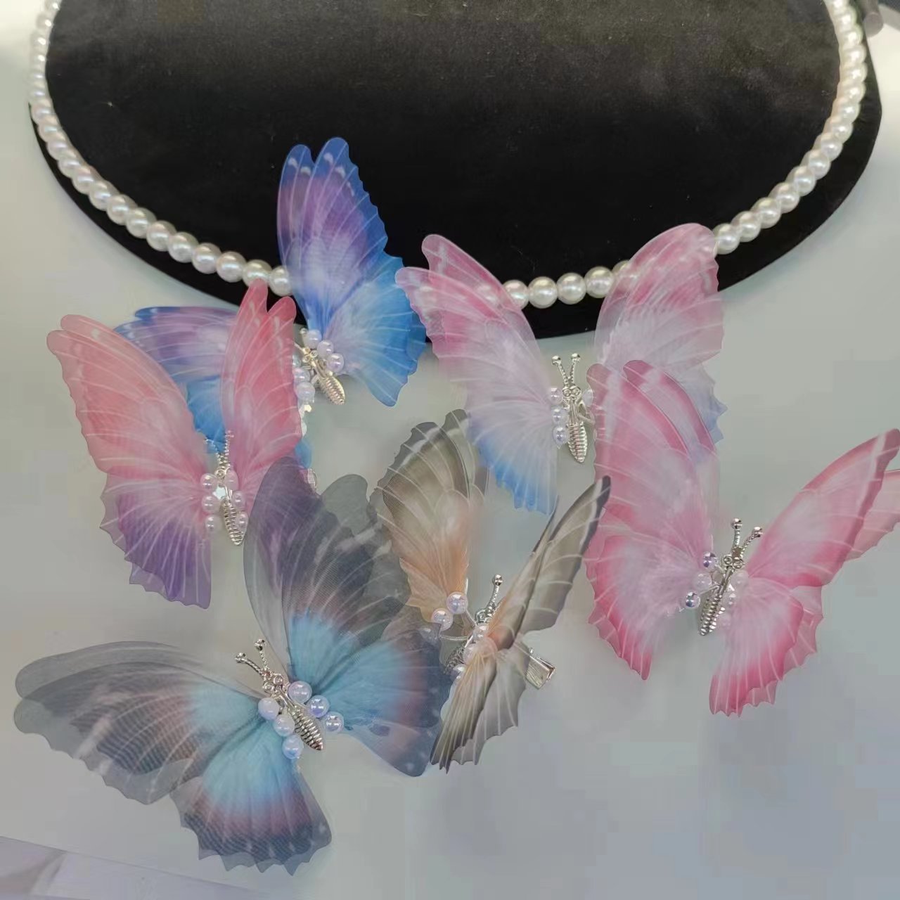 10cm 대형 나비 아름다운 Tulle 나방 헤어핀 한푸 헤드웨어 죽은 잎 나비 골동품 슈퍼 페어리 사이드 클립스토어 가기