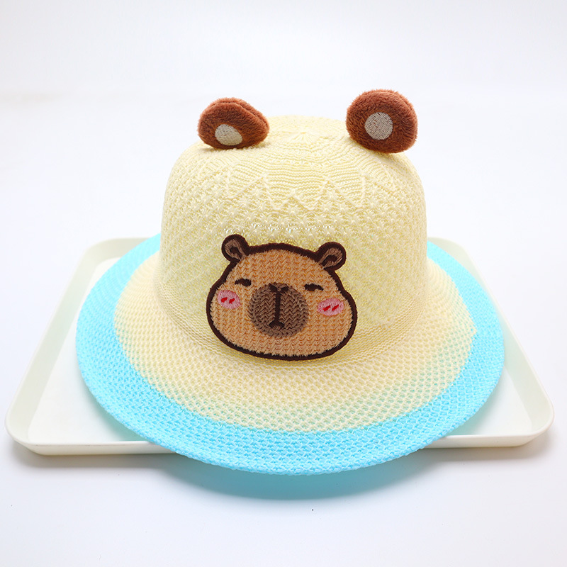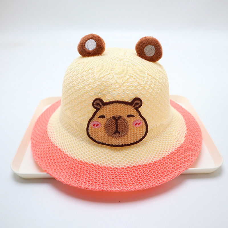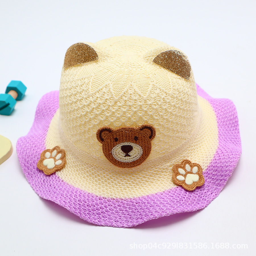 어린이 큰 챙 곰 밀짚 모자 여름 만화 귀여운 남성과 여성 어린이 태양 모자 야외 태양 보호 모자스토어 가기