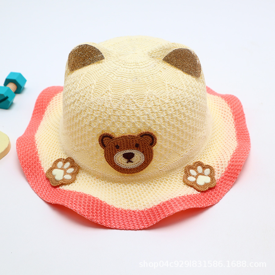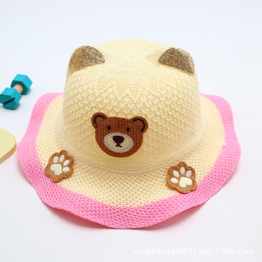 어린이 큰 챙 곰 밀짚 모자 여름 만화 귀여운 남성과 여성 어린이 태양 모자 야외 태양 보호 모자