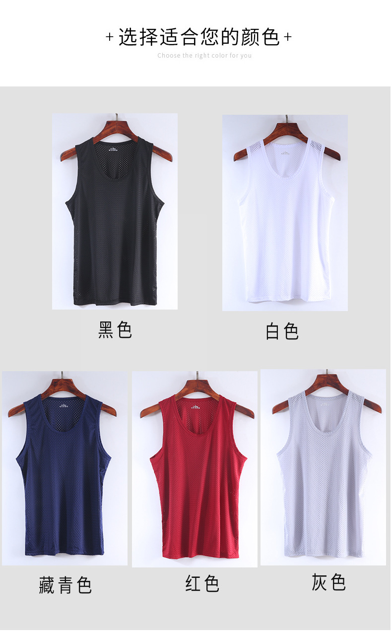 남성용 아이스 실크 중공 트렌디 메쉬 속건 조끼 스포츠 슬림핏 피트니스 겉옷 언더셔츠 남성용 통기성 베이스 셔츠스토어 가기
