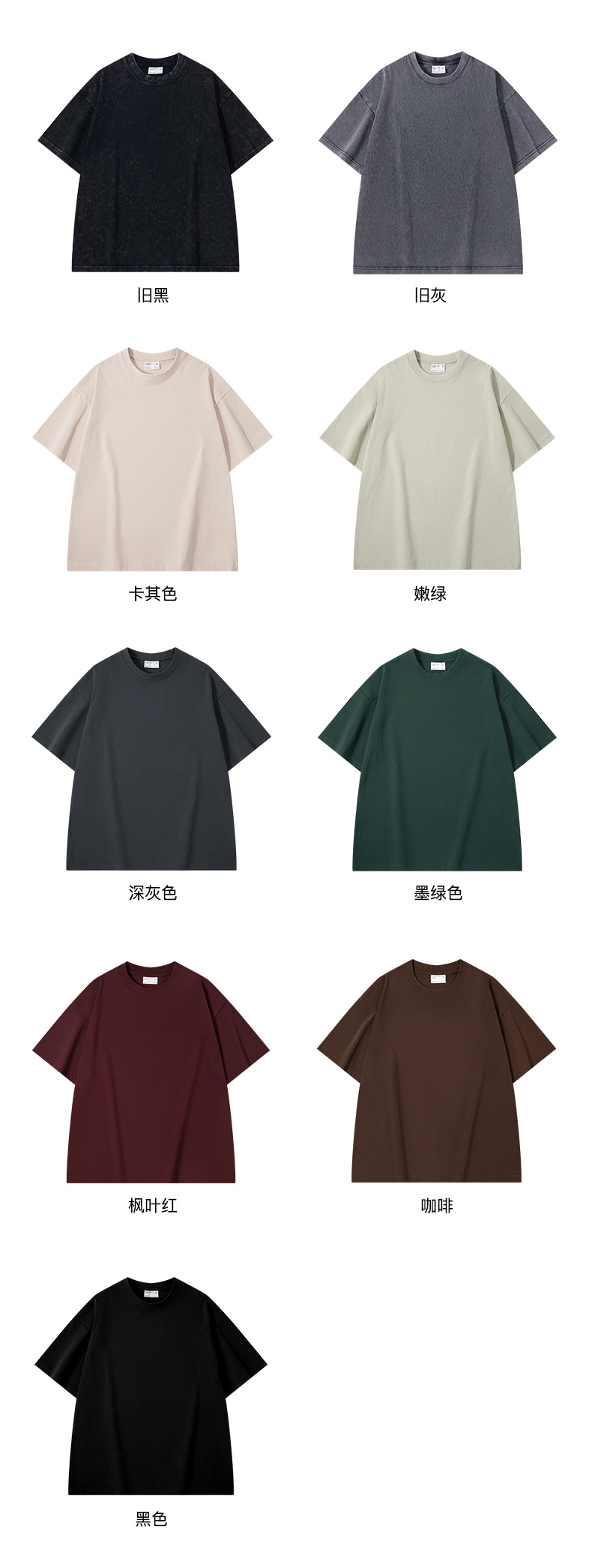 빗질면 300g 일본 복고풍 무거운 티셔츠 느슨한 타이드 브랜드 반 소매 면 반팔 남성 화이트 베이스 셔츠스토어 가기