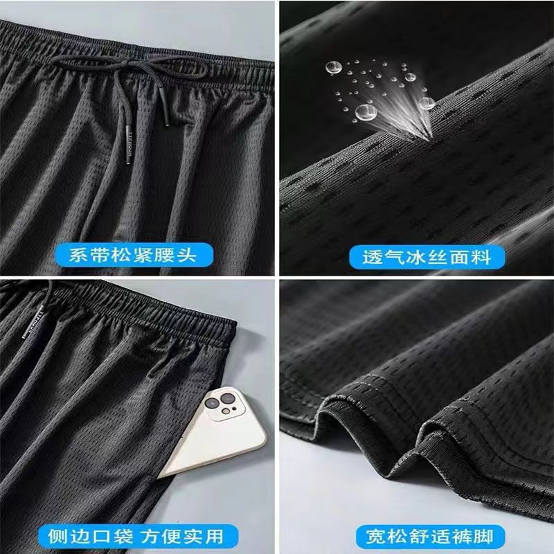 반바지 남성용 여름 아이스 실크 메쉬 바지 속건 통기성 느슨한 반바지 남성용 스포츠 캐주얼 대형 바지 남성용