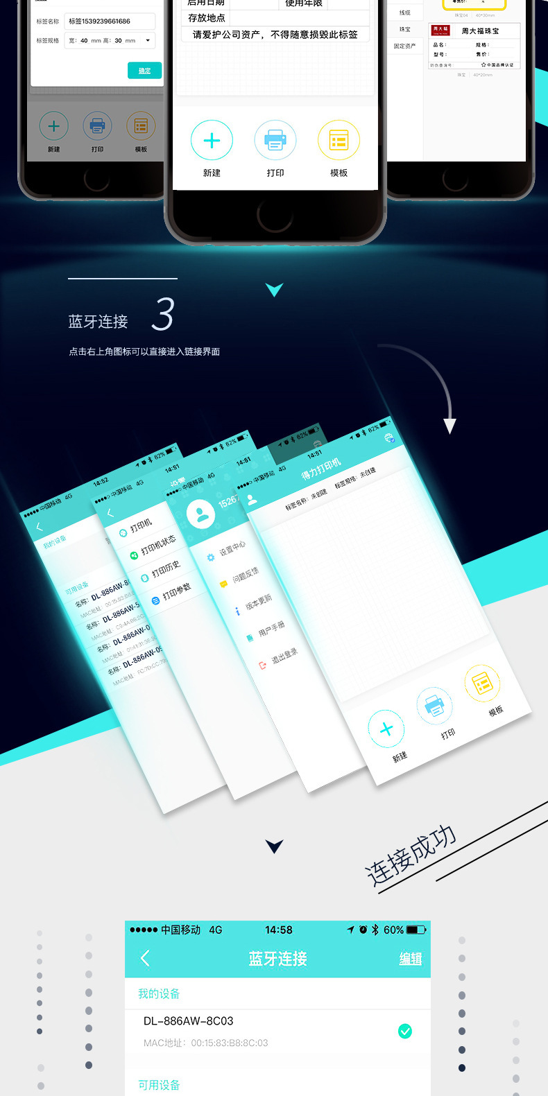 델리 DL-886AW/DL-886A 감열 프린터 라벨 익스프레스 주문 테이크 아웃 휴대 전화 블루투스 가격표스토어 가기