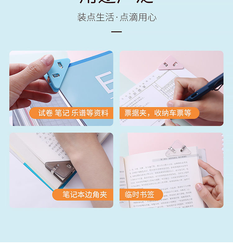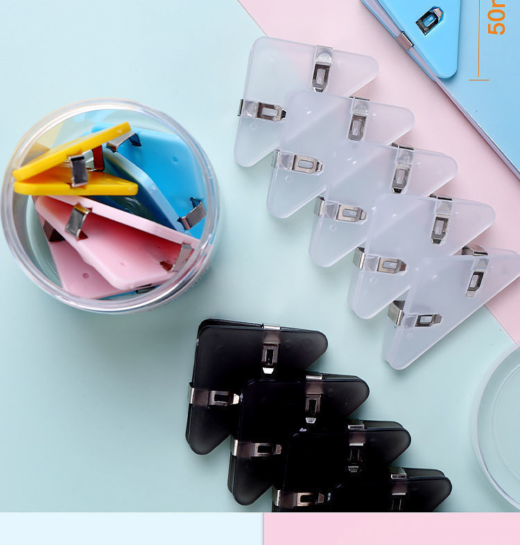 삼각형 클립 플라스틱 클립 문구 사무실 책 클립 홀더 폴더 책 테스트 종이 측면 코너 클립 롱 테일 티켓 클립