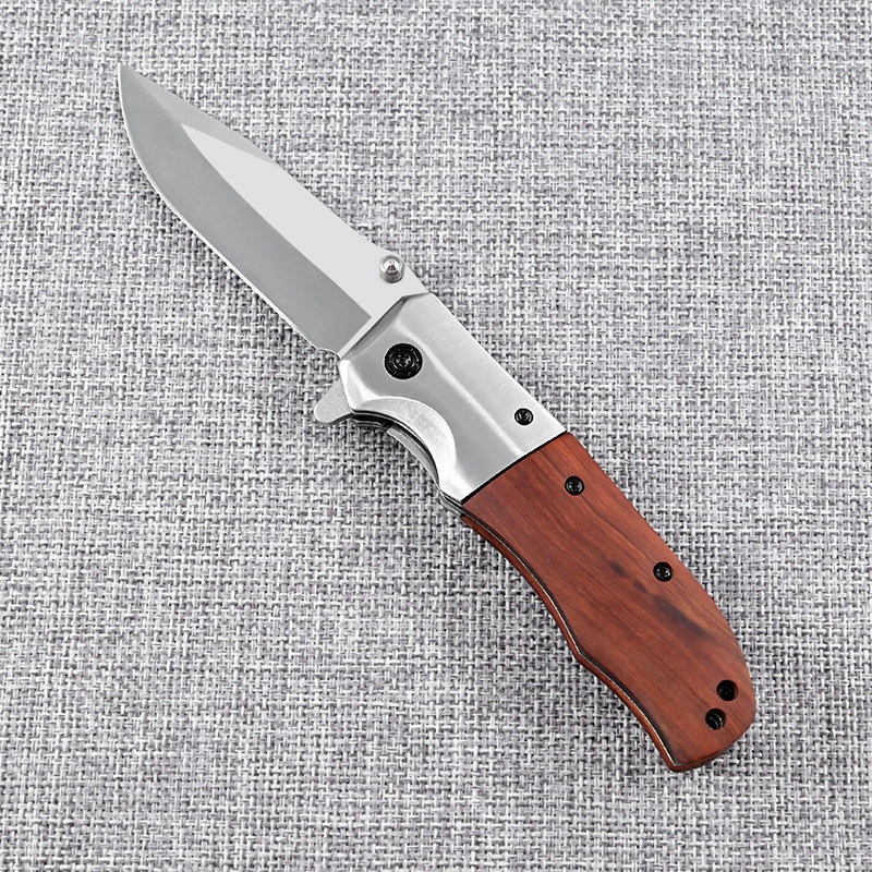 야외 캠핑 자기 방어 컬러 나무 손잡이 접는 칼 스테인레스 스틸 높은 경도 다기능 접이식 나이프 필드 생존 과일 칼
