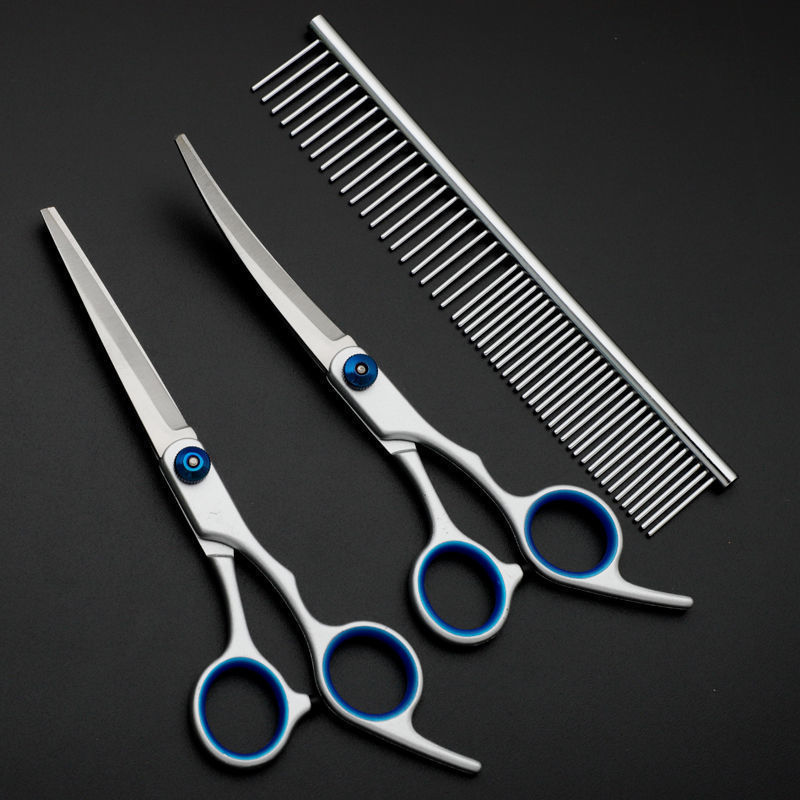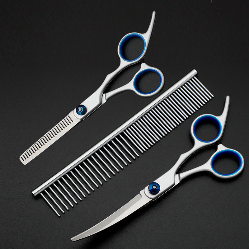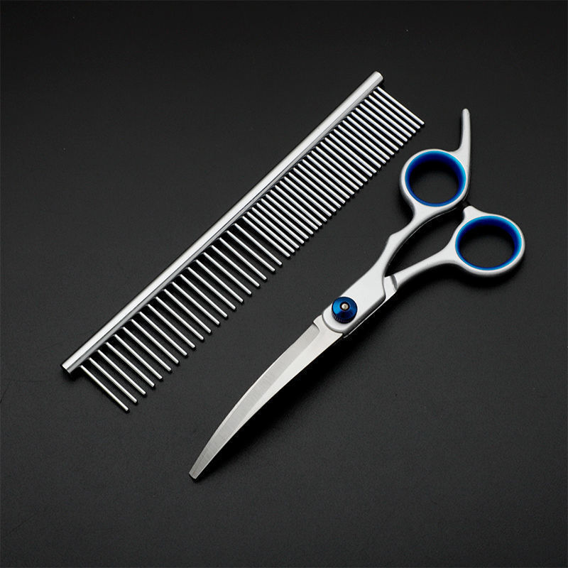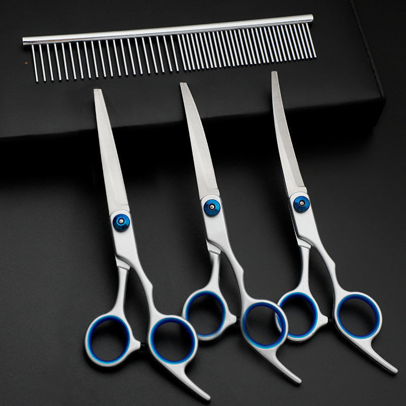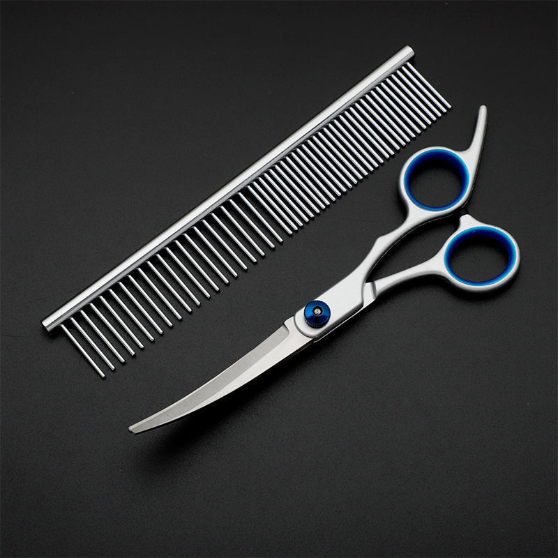 애완 동물 가위 미용 도구 세트 전문 머리 깎기 개 머리 곡선 가위 개 테디 머리 깎기 이발 가위