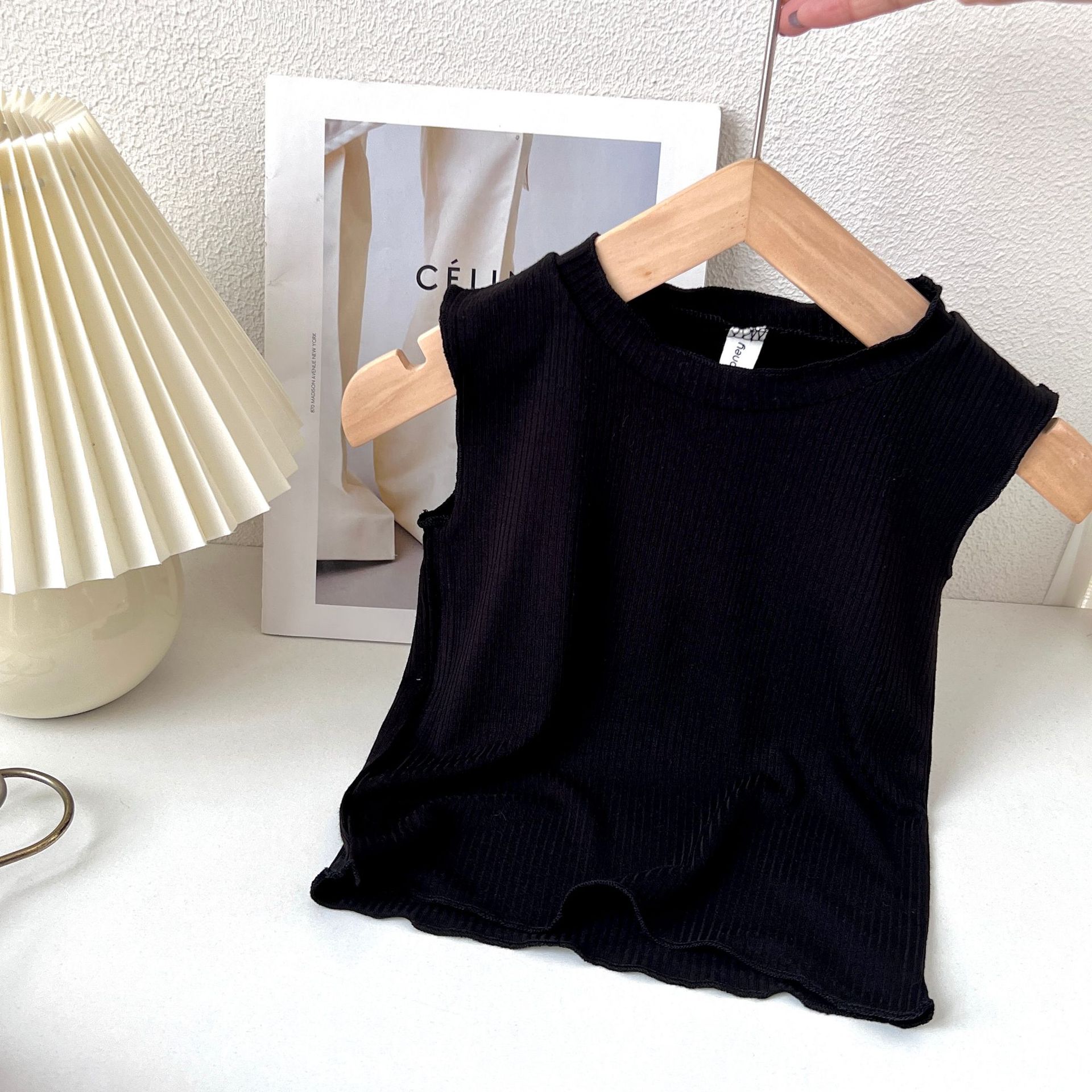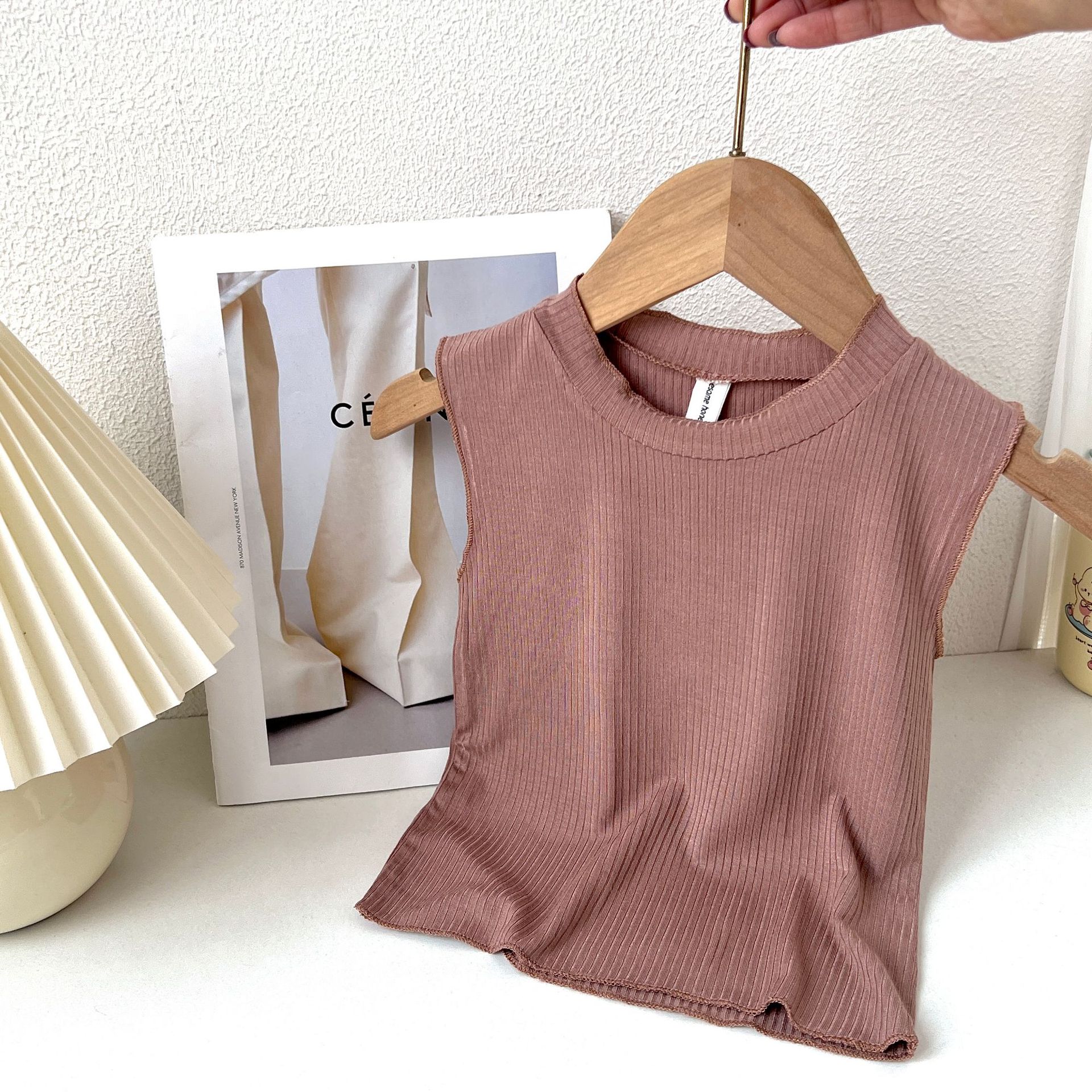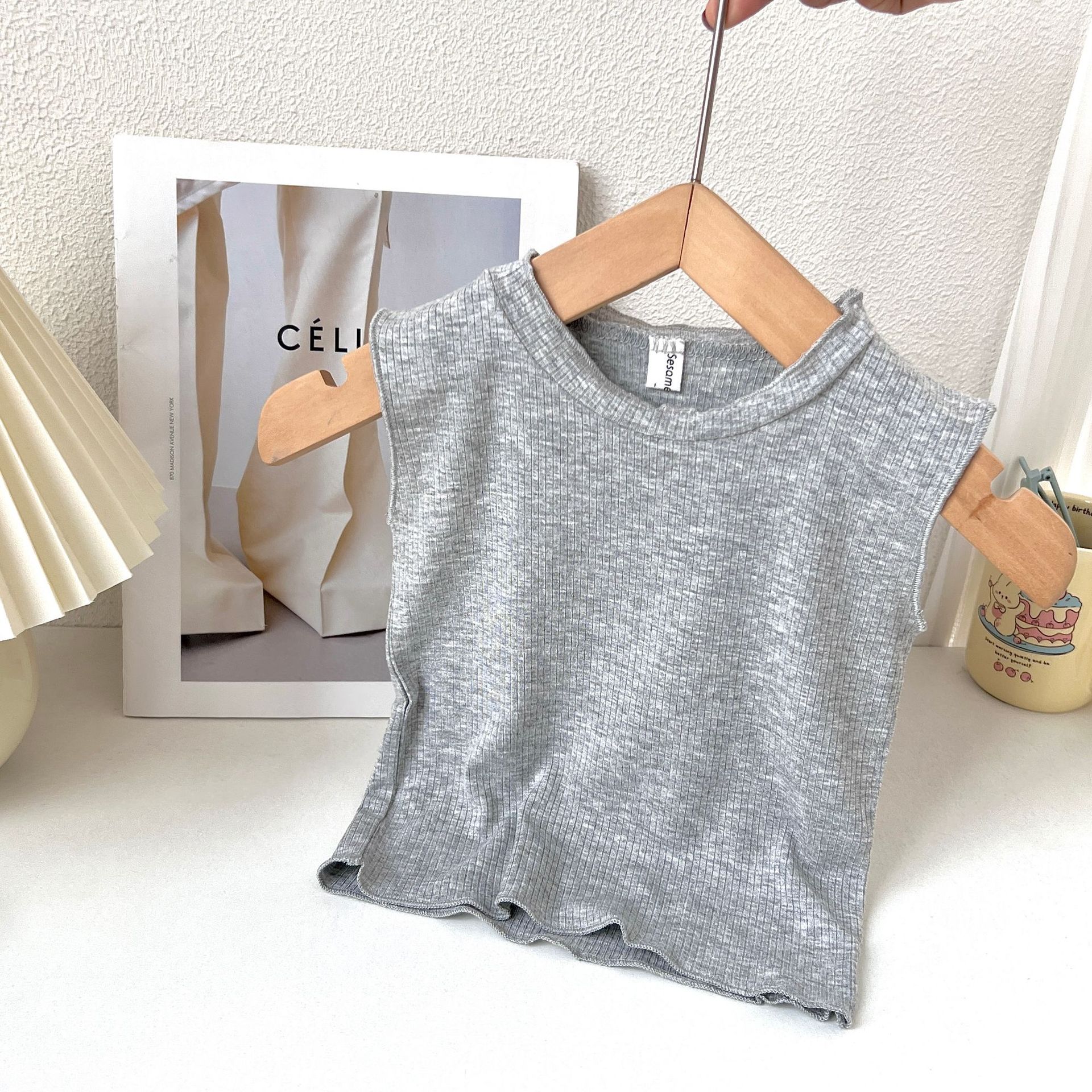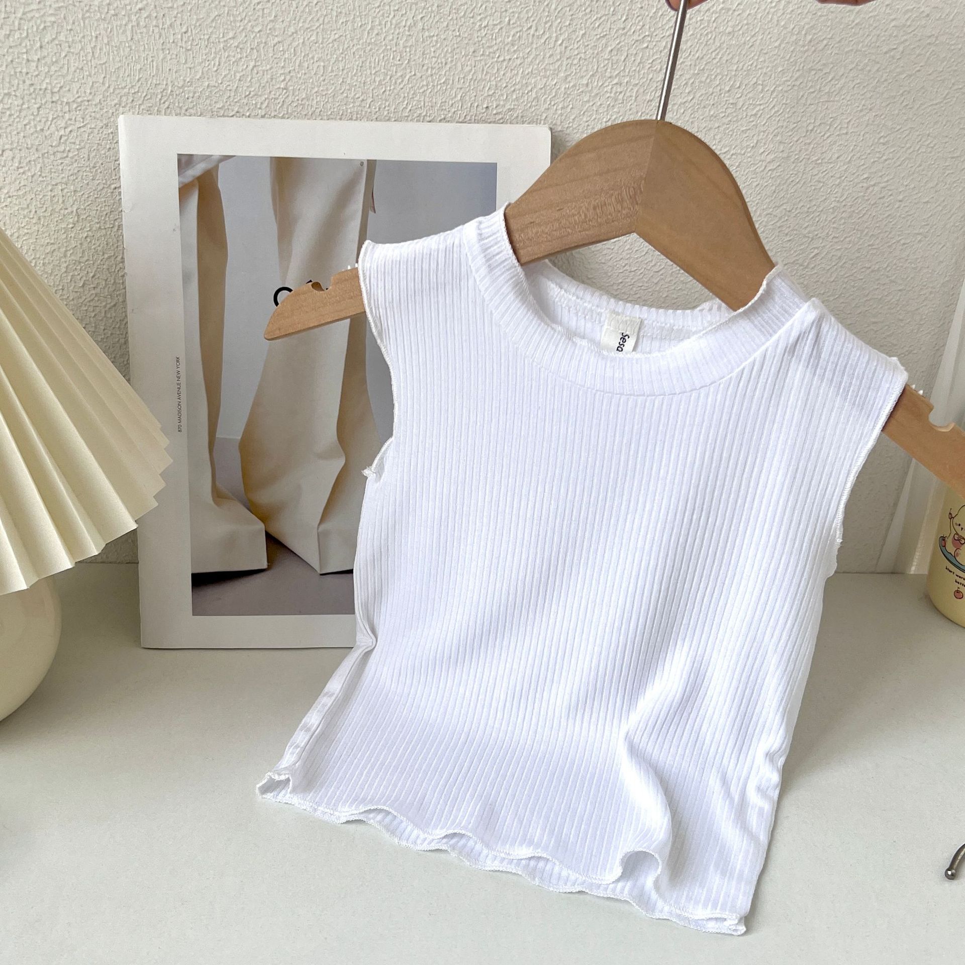 Miao Xuan 아동복 아동 조끼 여름 2023 새로운 한국 스타일 소녀의 여름 순면 니트베이스 민소매 탑