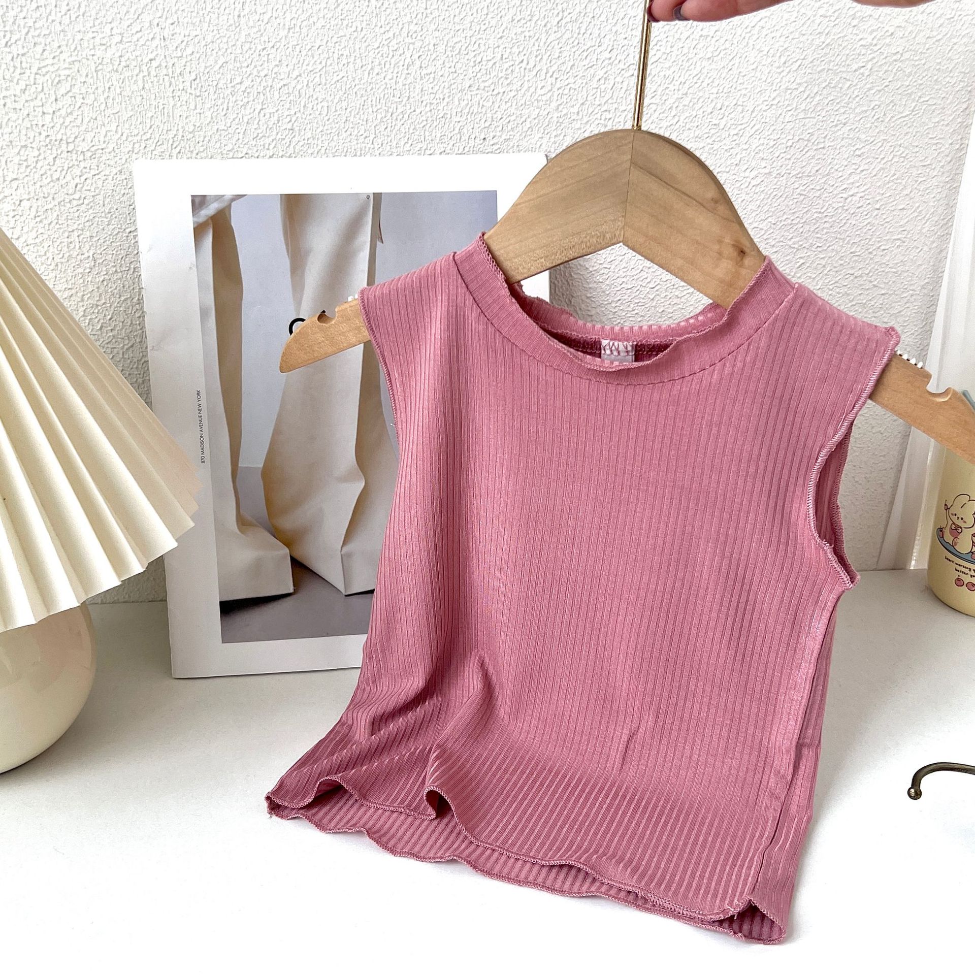 Miao Xuan 아동복 아동 조끼 여름 2023 새로운 한국 스타일 소녀의 여름 순면 니트베이스 민소매 탑스토어 가기