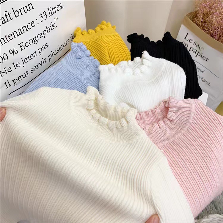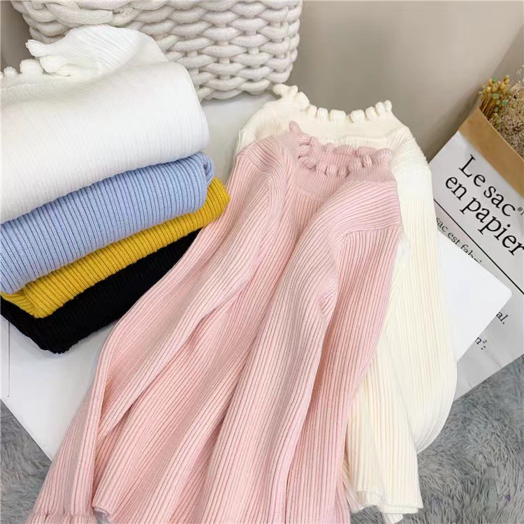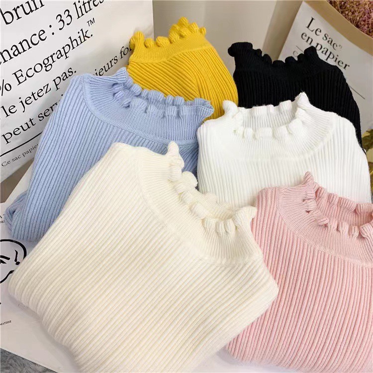 여아 스웨터 풀오버 가을과 겨울 우드 이어 니트 스웨터 서양식 한국식 베이스 셔츠 울 아동용 하이 칼라 탑